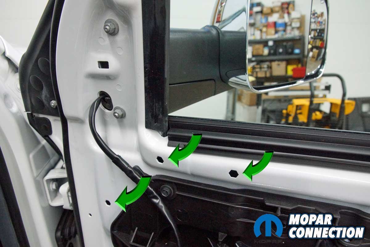 We recently installed a pair of American Trucks Trail Ridge towing mirrors (part no. HR108330) on our 2012 2500 Dodge Ram. The mirrors function correctly, and we are satisfied with the fit and finish. However, a Mopar Connection Magazine reader and Chrysler Dodge Jeep Ram parts department employee named Norm Palin suggested the installation of factory tow mirror reinforcement plates.