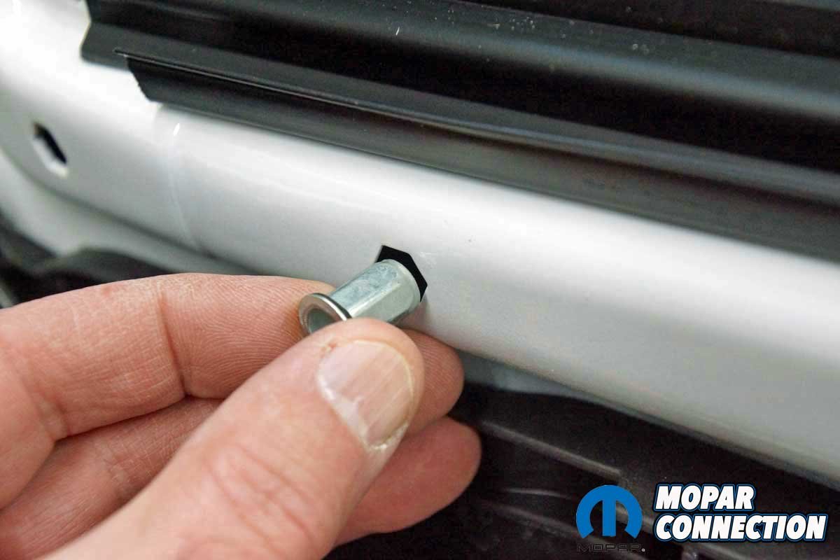 We decided to add the reinforcement plates to our truck. Palin provided the factory part numbers for the plates (68078242AA, LH and 68078243AA, RH), the Rivnuts (6507161AA, quantity of six), and bolts (6508709AA, quantity of six).
