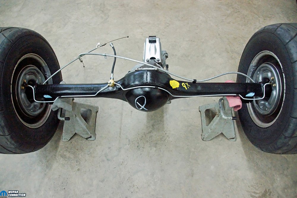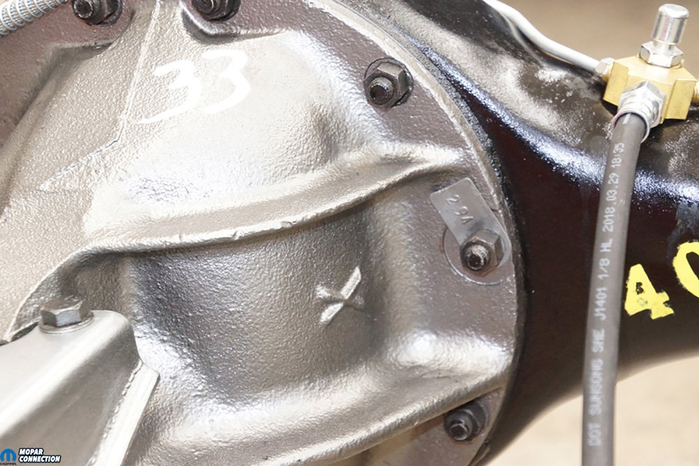 As it turns out, the housing was a C-body unit cut down to an A-body length with Mopar Performance axle ends, and spring perches welded to it. We measured the housing length and distance between the spring perches, and the measurements were dead-on to the factory specs. The axles were also C-body units that had been cut down, re-splined, and re-hardened. C-body axles meant a 4.5-inch bolt pattern, which would match our converted big-bolt pattern front disc brakes.