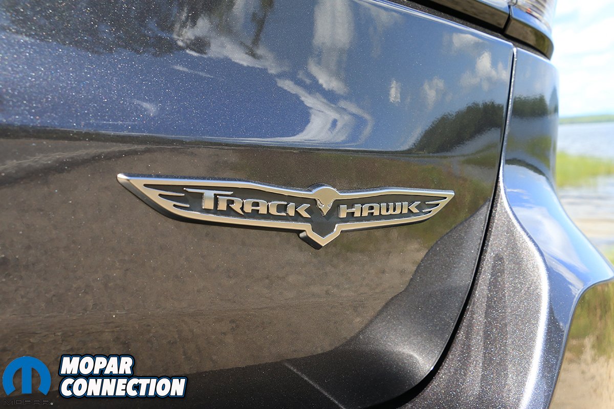Turn the drive mode dial over to Sport and the Trackhawk’s behavior becomes more urgent by way of tightened up suspension dampers, a livelier torque split that sends 65% of the grunt to the rear end, and a gearbox that’s dialed in for quicker response. For those that long for the ability to row their own, there’s always the option of bumping the shifter to manual mode and selecting gears via the steering wheel-mounted paddles. With shift times reduced by 50% versus those in Auto mode, it’s not a bad option for those who want a little more driving involvement when taking the long way home from work or when towing, the latter of which is rated at up to 7200 pounds in the Trackhawk.