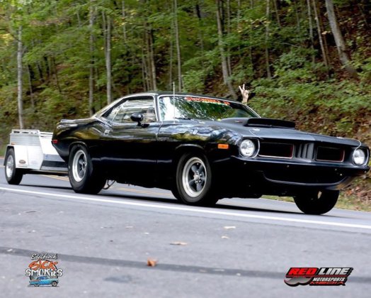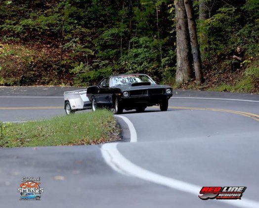 Above: Our ‘Cuda and trailer rig for Drag and Drives tackling the Tail of the Dragon during Sick Smokies.