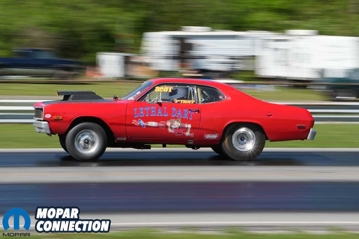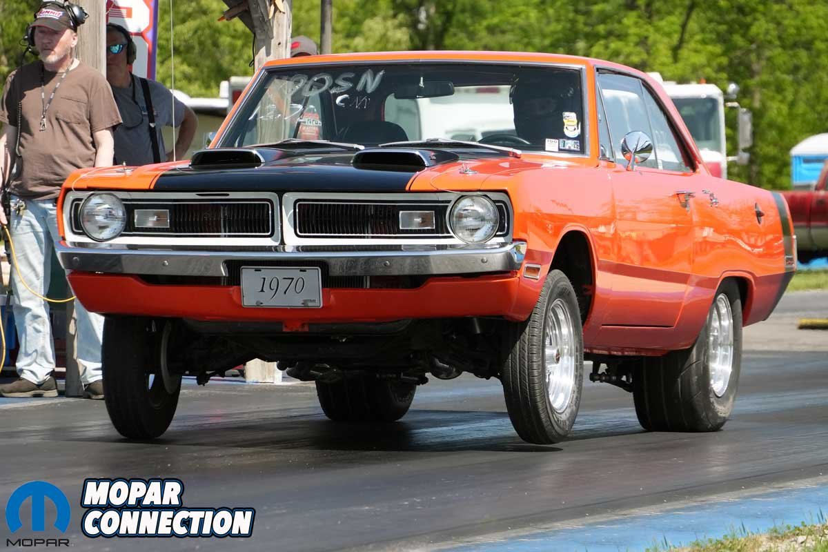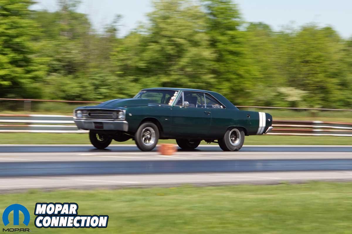 The track operator delayed the event’s start time to ensure the track was fully prepped and any water concerns had subsided. Once the action started, each class had three time shots. To fill the Pro Mopar, the fastest eight qualifiers of Hi-Po and Modern Mopar were placed on a ladder.