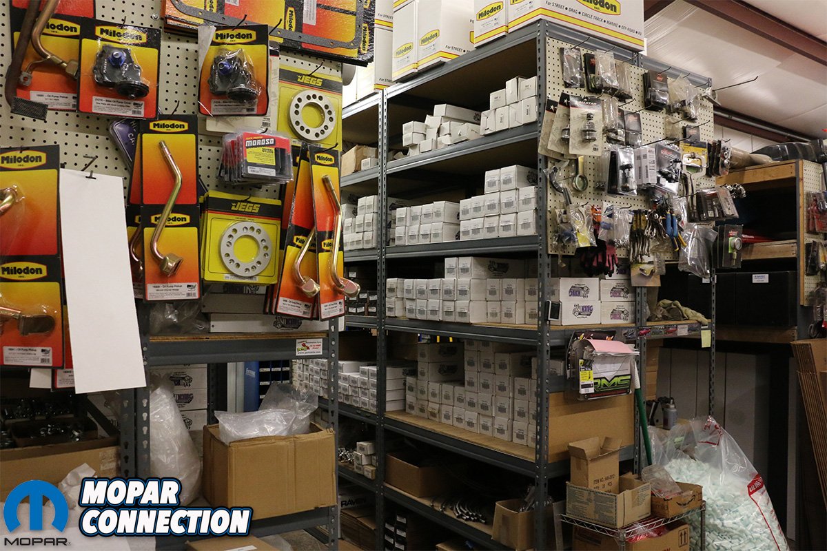 After talking with Bill about the history of RMS, he showed us around. We started in the main building which houses the inventory of parts and office. Bill tries to keep a good stock of inventory of all the parts listed on the website on hand at all times to provide quick shipping for customers. Although suspension kits take some time to build due to each one being individually designed depending on the needs of the customer. Bill had shelves full of Flaming River Industries’ racks, Wilwood brakes, Milodon oil pans and all sorts of other goodies. Just past the selves of parts sits a couple of lifts. Bill uses them to work on some customers cars but mainly for his fleet of cars.