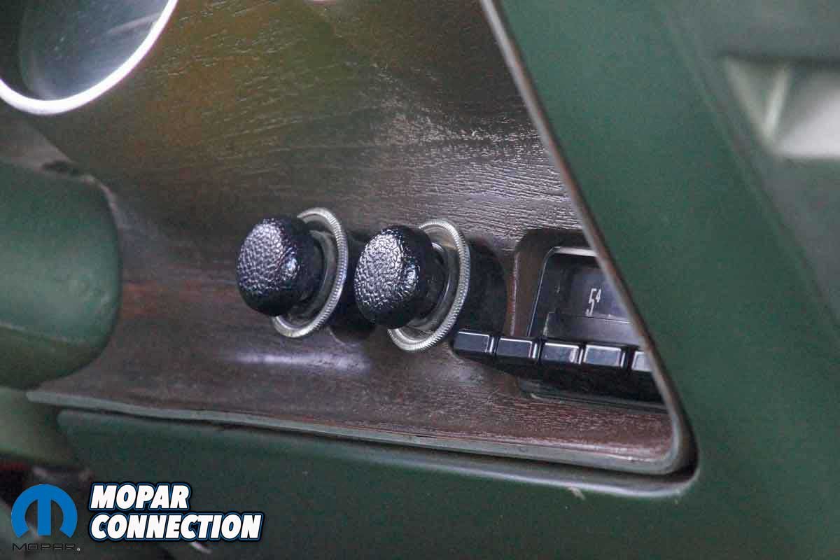 Since Bill’s ownership of the Charger, it has worn 15×7-inch Rallye wheels instead of the factory 14×6-inch steel wheels and hub caps. After finding the name of the second owner, Owen, it was revealed that when the Charger was purchased in 1979, it came wearing the Rallye wheels, and the trunk contained four green wheels and hub caps.