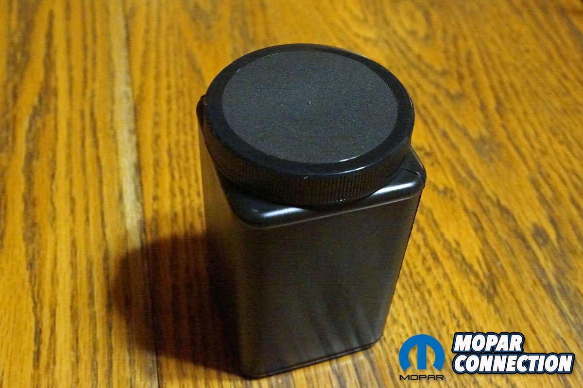 Above Left: Part of our oil change on the Charger includes emptying the JLT Performance Oil Separator. Above Center: The container had a minimal volume of oil in it. So we emptied and reinstalled it. Above Right: We use Amsoil products in the Charger. We poured in seven courts of 5w-20.
