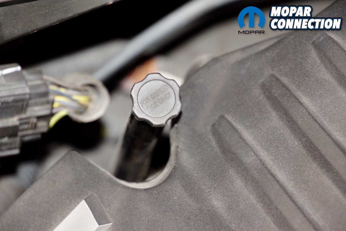 Now that the NAG-equipped platform Mopars (2005-2012) are getting long in the tooth and are possibly owned by a second or third owner, these cars likely won’t be visiting the dealership for service. To monitor the transmission’s fluid level, B&M developed a billet steel and 6061-T6 aluminum locking dipstick (part nos. 22300 – 3.5L and 3.6L, 22301 – 5.7L, and 22302 – 6.1L and 6.4L), which slips in place of the factory dipstick plug. Seeing we do our service work, we thought this dipstick would be a great addition to our NAG-equipped 5.7L Police Package Charger, so we picked one up from B&M.