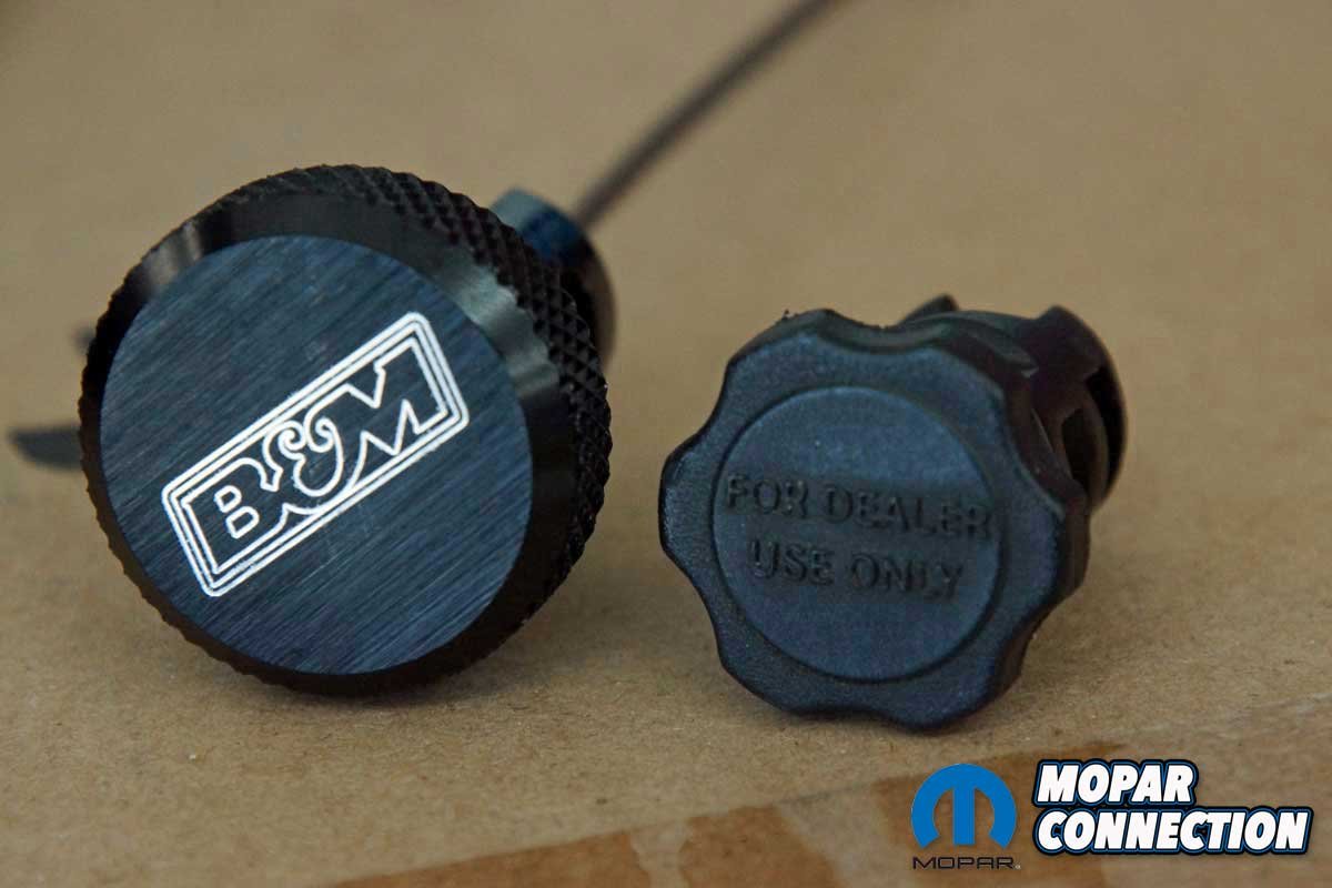 Above: The B&M dipstick cap provides a more appealing appearance in the engine bay than the factory plug.