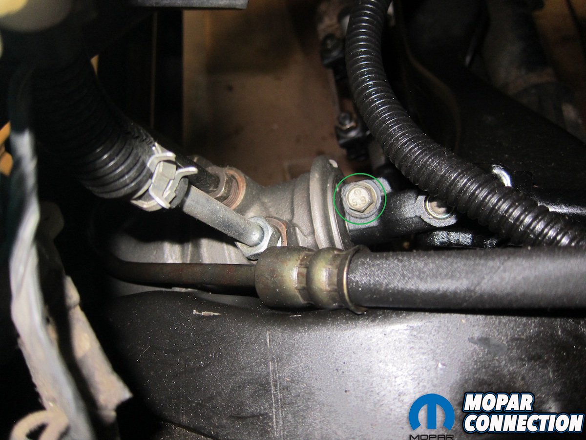 The opposite end was similar but, since it’s a double-D connection instead of splines, the pair of upper set screws just needed corresponding dimples on which to properly seat. With the shaft in place and the set screws removed, we were able to squeeze a small drill under the master cylinder to create these dimples. Both ends of the shaft were fully prepped at this point, so the set screws were installed and locked down with the supplied nuts.