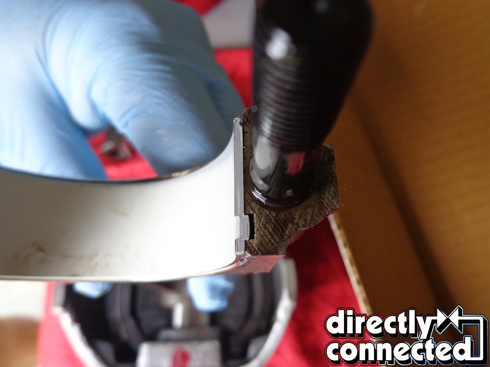 Above left: Work the seal retainer assembly into the block making sure the sticks are all the way in the block as far as possible. Any gap and the seal will leak. Above middle: Even when the seals are installed correctly there will sometimes be a very small part of the “stick” seal that should be trimmed off with a single-edged razor blade. Above right: Fill the remaining recess with silicone to help ensure that there will be no leaks after assembly. Torques the seal retainer bolts to specifications. Do not use any extra silicone sealer inside the block!
