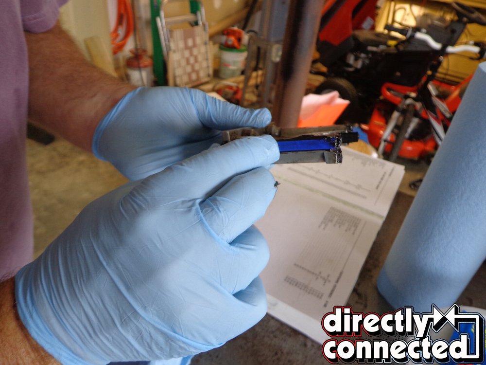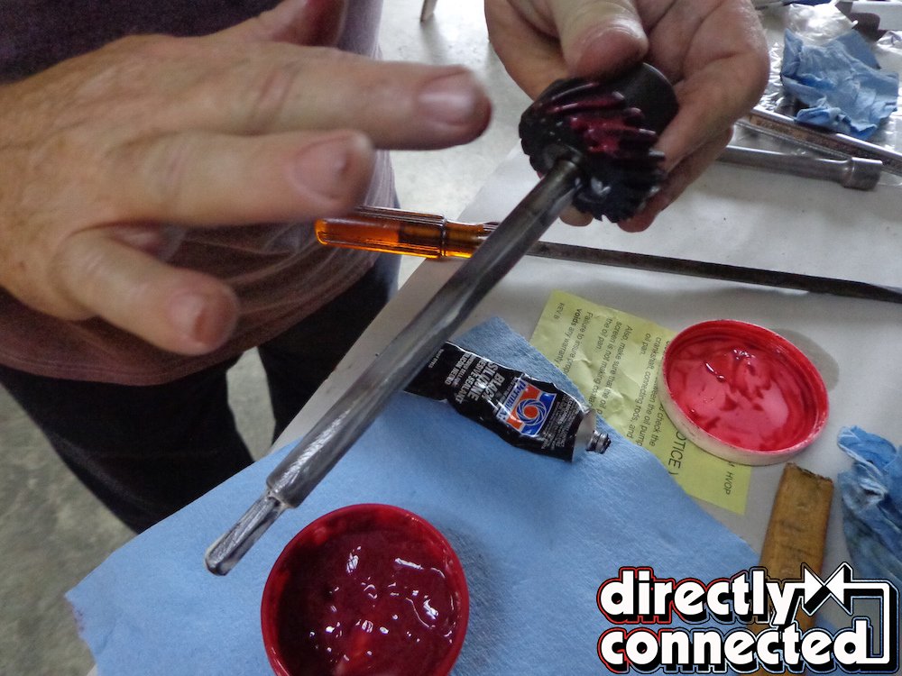 It is vital that you use a high quality assembly lube on all the internal moving parts of the engine. We also use a heavy racing oil to coat parts and to dip the piston and rings in to assemble. Each rod and piston assembly will be marked by the machine shop as to the order and position needed during assembly. The rods are stamped as to their position, the pistons are marked with a notch that goes toward the front of the engine, and the rods are also marked with a dot.