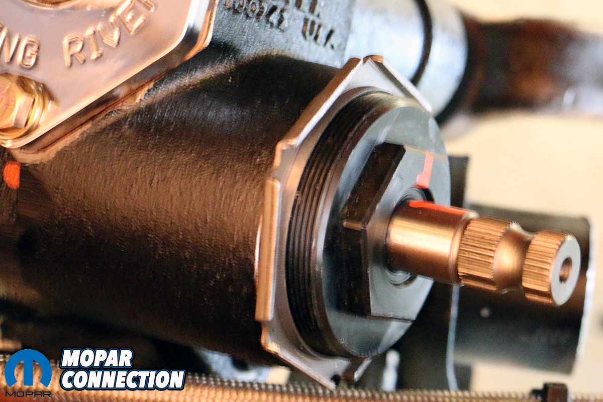 Above: Every Flaming River Quick-Ratio Steering Box comes pre-lubircated and pre-adjusted to factory specifications and Flaming River’s own presets. This helps in properly installing the pitman arm.