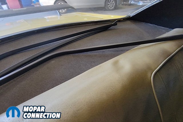With all the air flow coming into the car, it always pulled down the molding and also damaged the sail panels and headliner. The original rear window molding was a rubber strip. The one in our Super Bee has not aged well and was in poor condition.