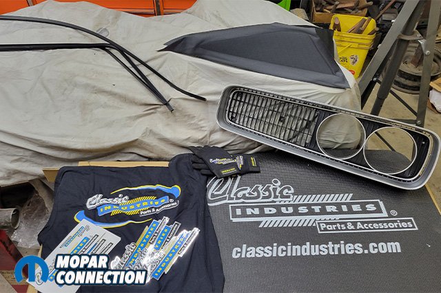 Today, our 1970 Dodge Super Bee receives new front grille inserts, rear window molding, and sail panels from Classic Industries and OER. The grille inserts in this car have been repaired many times after being struck with birds, deteriorated by age, and damaged from people not opening the hood correctly. The original plastic grilles have grown brittle over time, and have faded with sunlight.