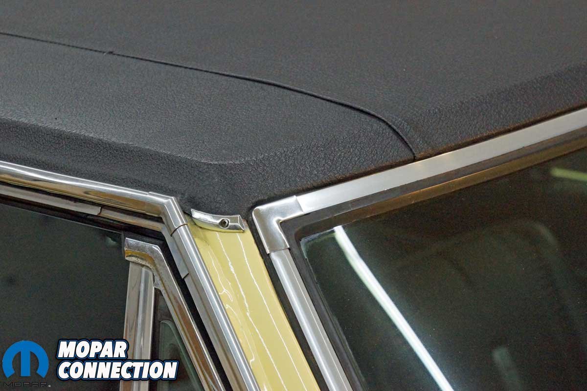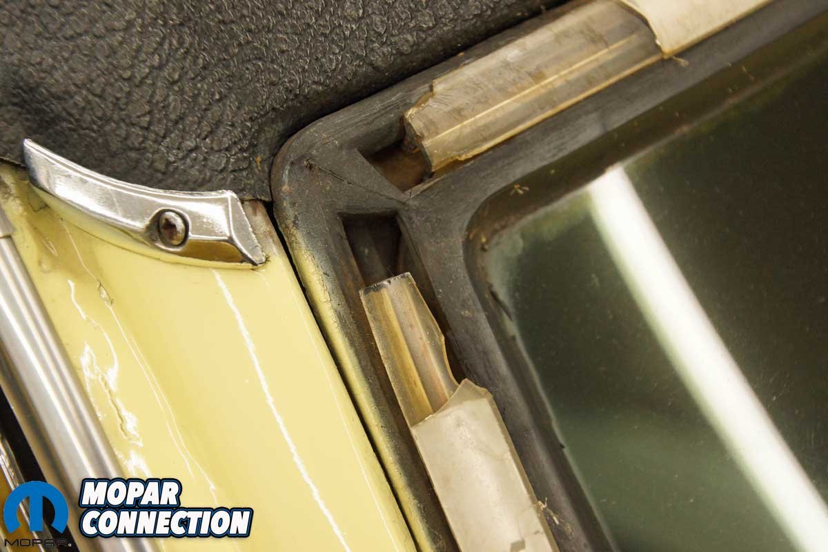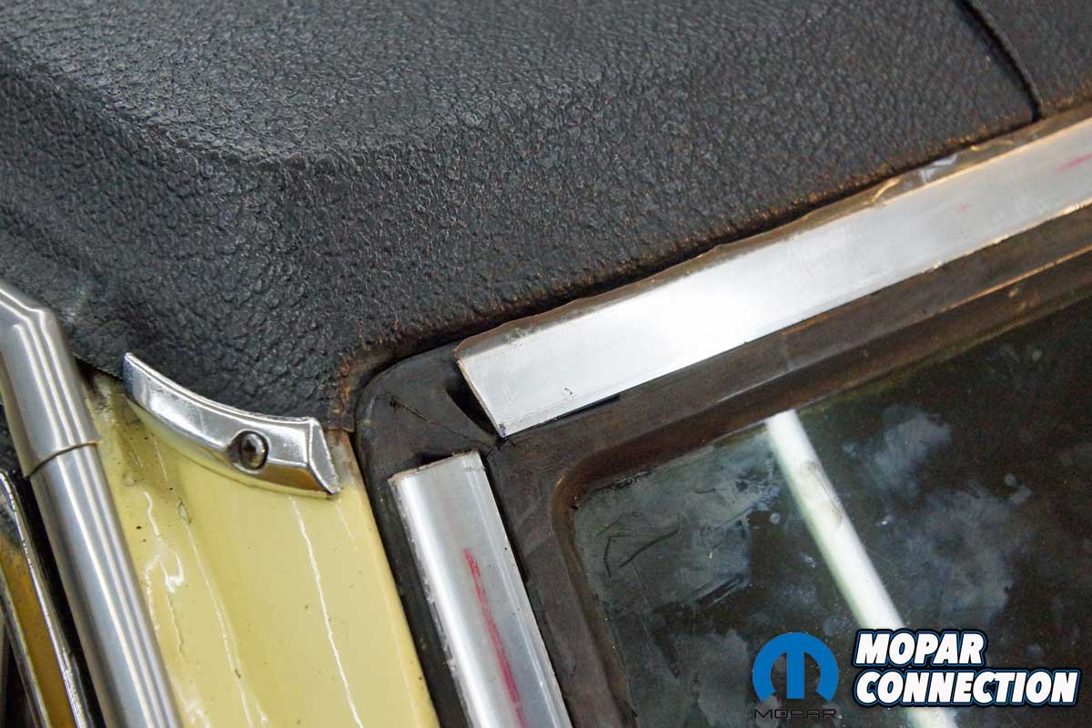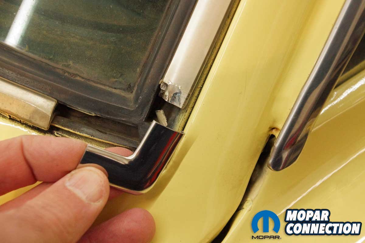 Luckily, Classic Industries offers all the parts needed to replace the trim. We picked up a 4-piece chrome lock strip set (part no. MA1811) and four polished stainless corner clips (sold individually) (part no. MP14019). The lock strip set and corner clips fit the Dart base model, the 270, the GT, the Plymouth Barracuda, the Valiant base model, and the Valiant Signet. The parts will work on 2-door hardtops and sedans and 4-door sedans, but they will not mount on a convertible model.