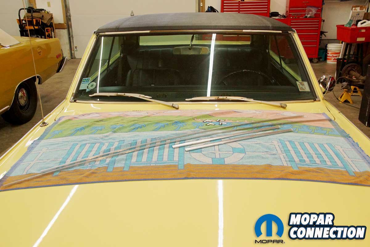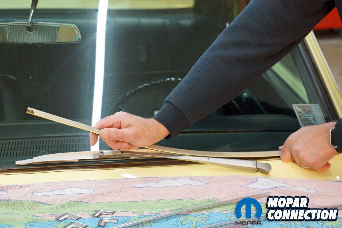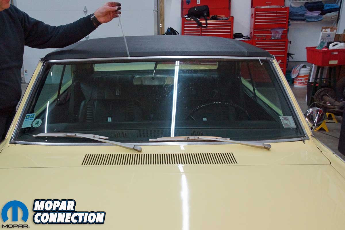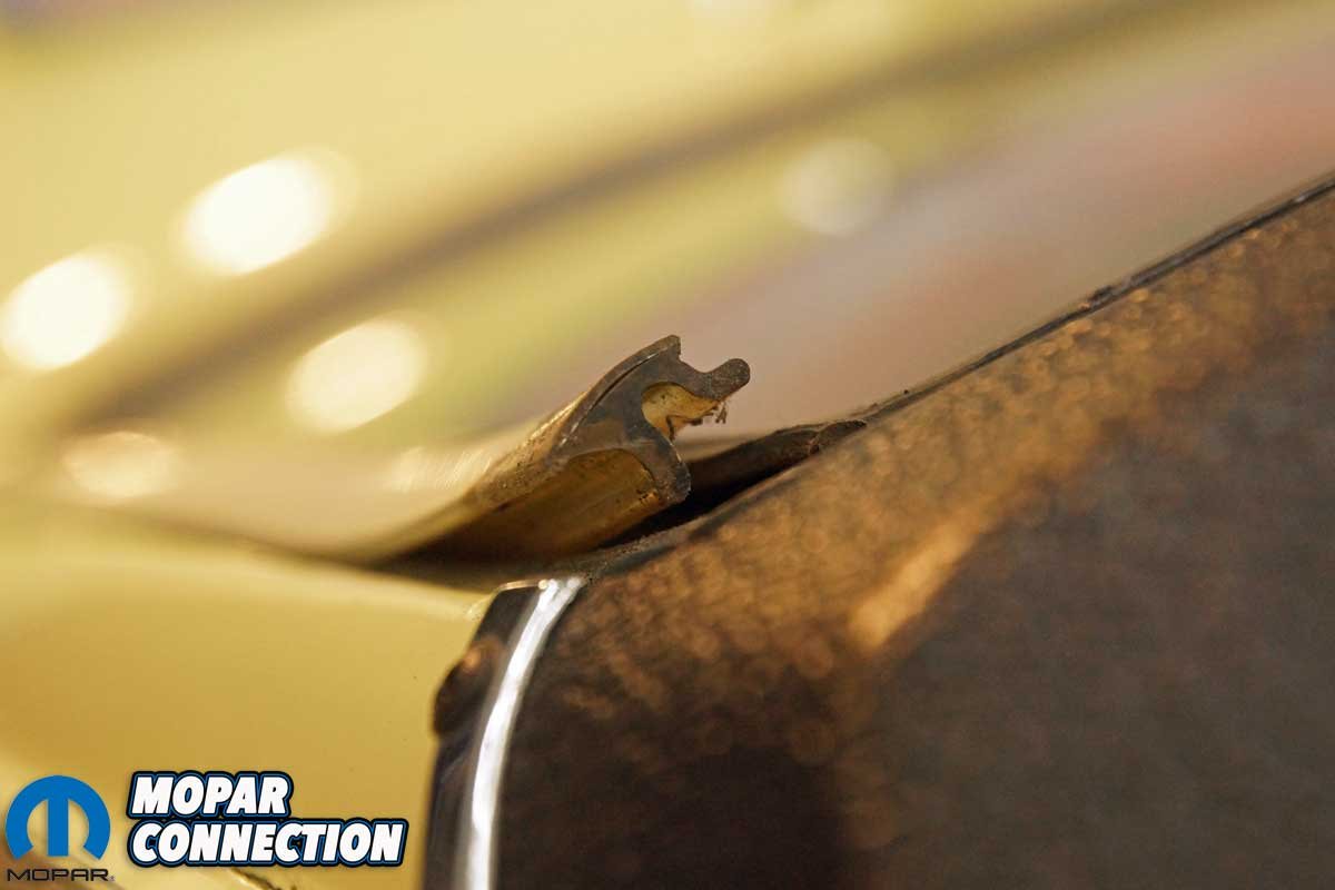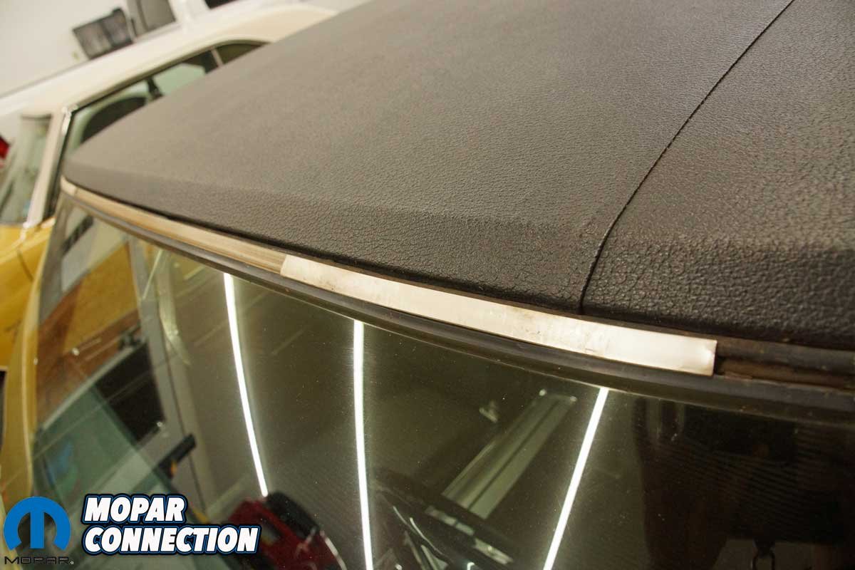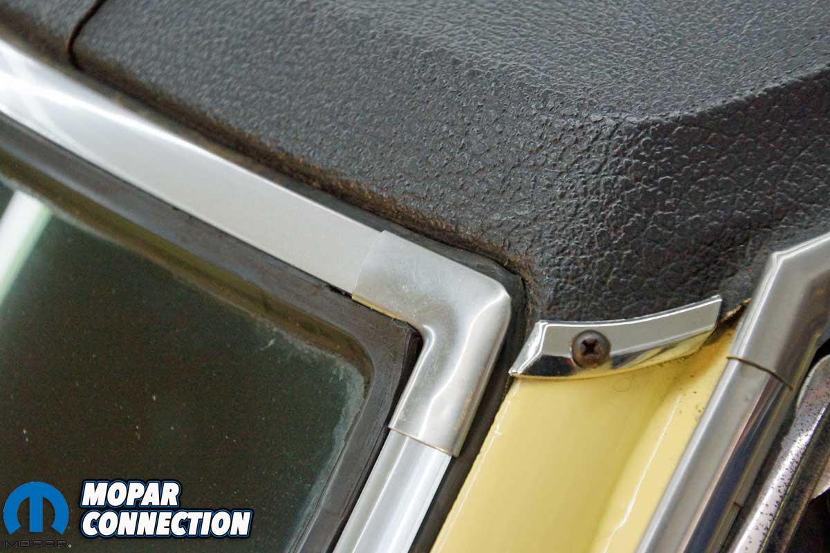 After 35 years of baking in the California sun before making its way to the east coast, our Dart GT’s windscreen trim broke down like every other ’67. However, the damage was not as bad as some; the Dart retained three corner clips.