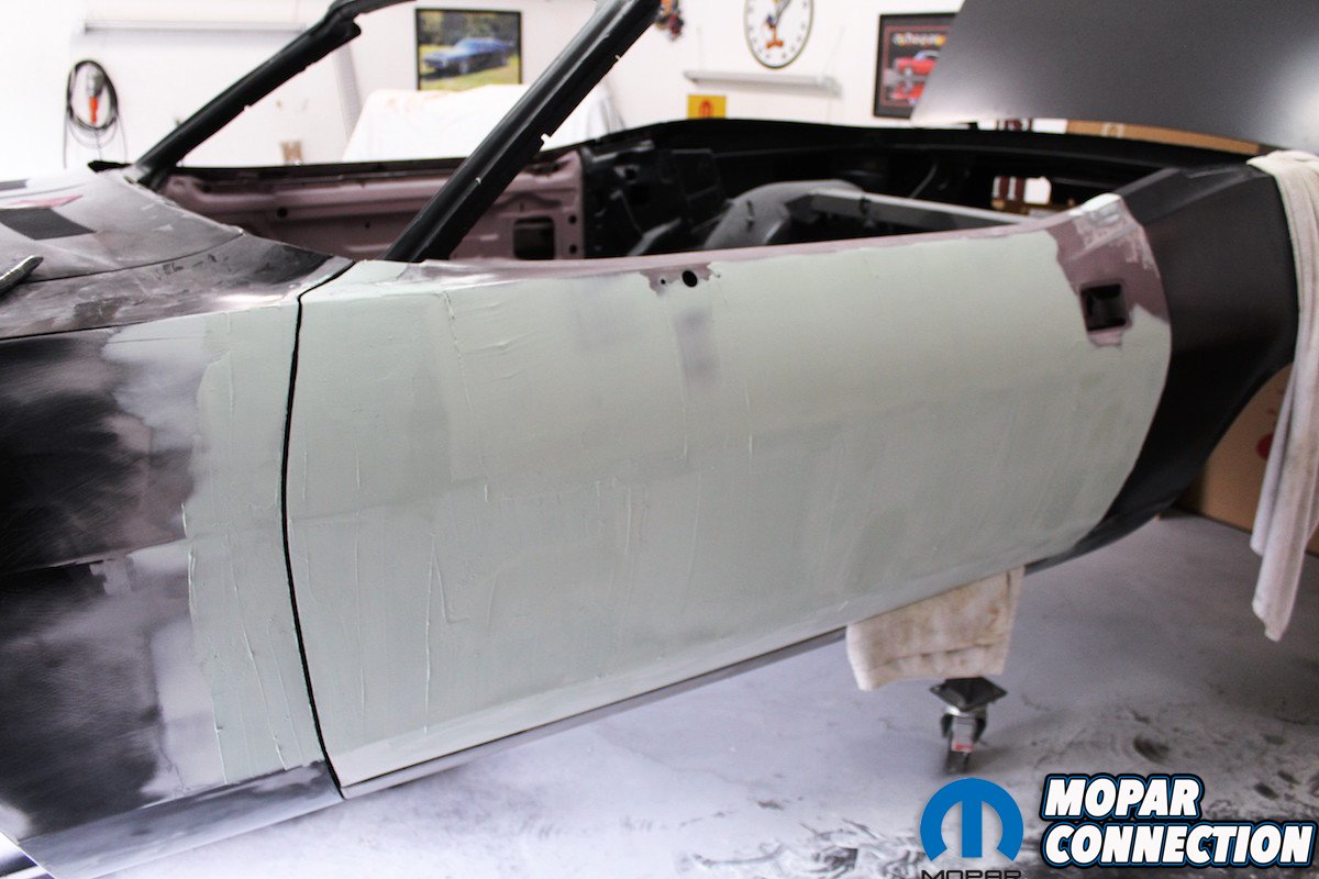 Recreating the exact body lines on the doors that perfectly match the front fender and rear quarter panel proved to be a real time consuming effort. There are dozens of books that detail how to use filler and sanding techniques. If you are a beginner, you need to study up and even do some test panels. We are going to focus on the completion of the bodywork on the Comeback ‘Cuda and add some great tips along the way to ensure a great final, outcome.
