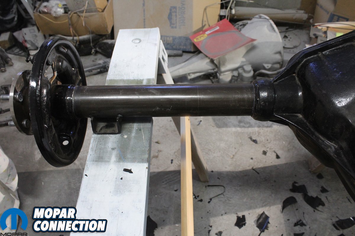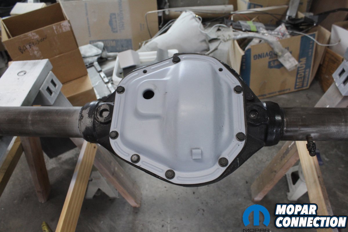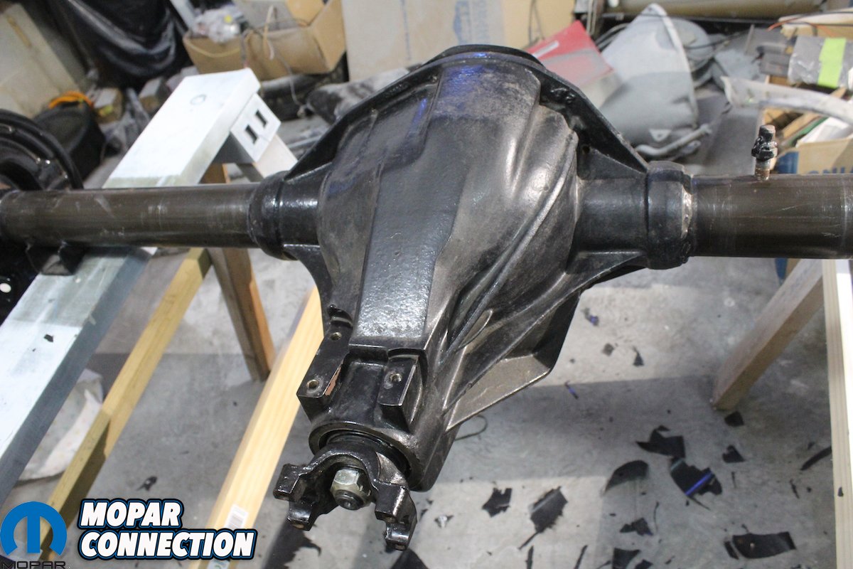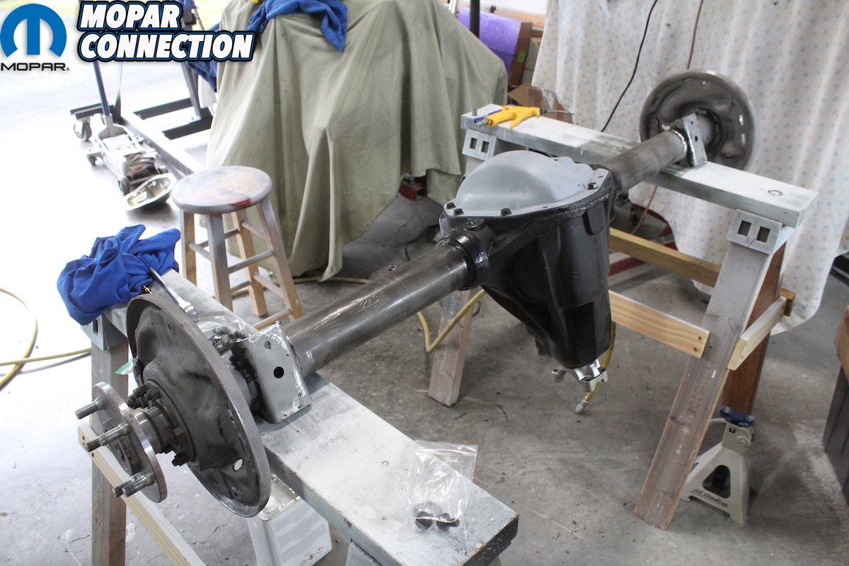 Our last article on the Comeback ‘Cuda covered the restoration of the front suspension. Now we turn our attention to the rear suspension. All 4-speed Hemi ‘Cuda’ convertibles came with a 9.75 Dana 60 rear end and heavy duty (HD) springs. Upon inspection of the rear end we discovered that indeed we did have a completely rebuilt Dana rear, but it isn’t an original Mopar unit. The good news is it is a heavy duty Moser Dana rear end. If you thought a Ma Mopar Dana was bullet proof, you should see this bad boy. Every part of this unit is more stout than an original. The axles, the housing, the welds on the axle tubes, all are more beefy than original.