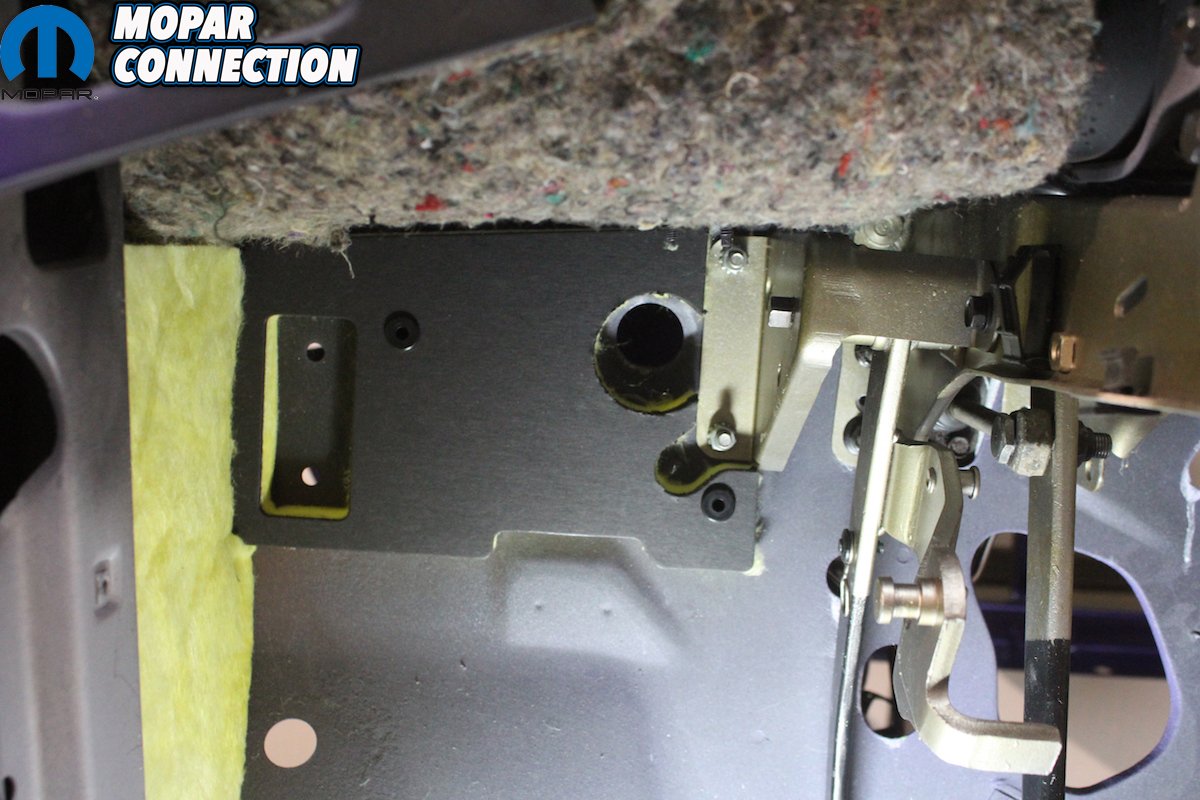 After installing the brake/clutch pedal assembly, the master cylinder, proportioning valve, and brake lines on our on-going Comeback ‘Cuda ’70 Hemi-powered Plymouth ‘Cuda convertible project car, we then install the under dash insulation. Detroit Muscle Technologies “shoddy pad” and the “fiber board” insulation kits are great! They are cut to exact specifications and their fit is spot on. Having great parts and correct tools always make things go so much better.