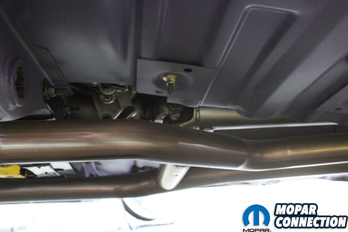 The exhaust system thankfully is reproduced complete with date code, part numbers, and Pentastar with all the correct bends, swedges, and clamp markings. The Hemi required mufflers and resonators that really quiet down the elephant. Once you hear what the car originally sounded like it is not hard to see why one of the first things to be tossed was the muffler and resonator for some much less restricted and meaner sounding system. We got the heat shields from our good friends at YearOne, complete with the correct mounting screw bolts. Hangers were purchased from Accurate Exhaust as well as the exhaust tips.