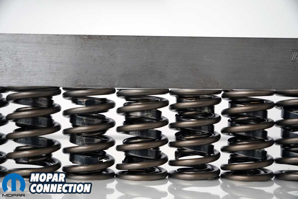 Comp Cams provides specifications with each set of springs. These specs, including maximum lift, open and closed seat pressures, and coil bind height, are vital information to ensure the springs will operate adequately. The camshaft and rocker arm ratio determines the maximum valve lift. The spring must accommodate the camshaft and rocker ratio valve lift without achieving coil bind height.
