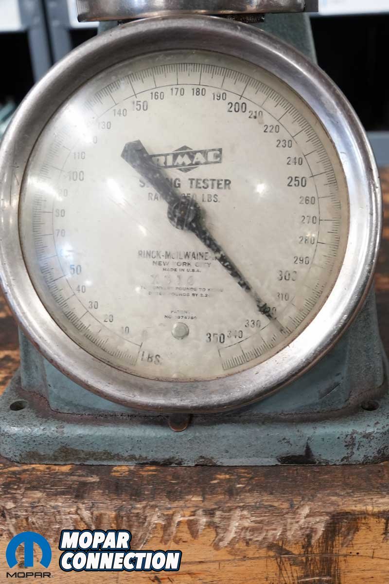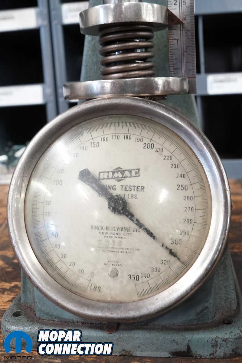 Above: I measured the spring pressures using a Rimac valve spring tester. The machine shop had two testers with different pressure ranges. I selected the Rimac tester with the greatest pressure potential.