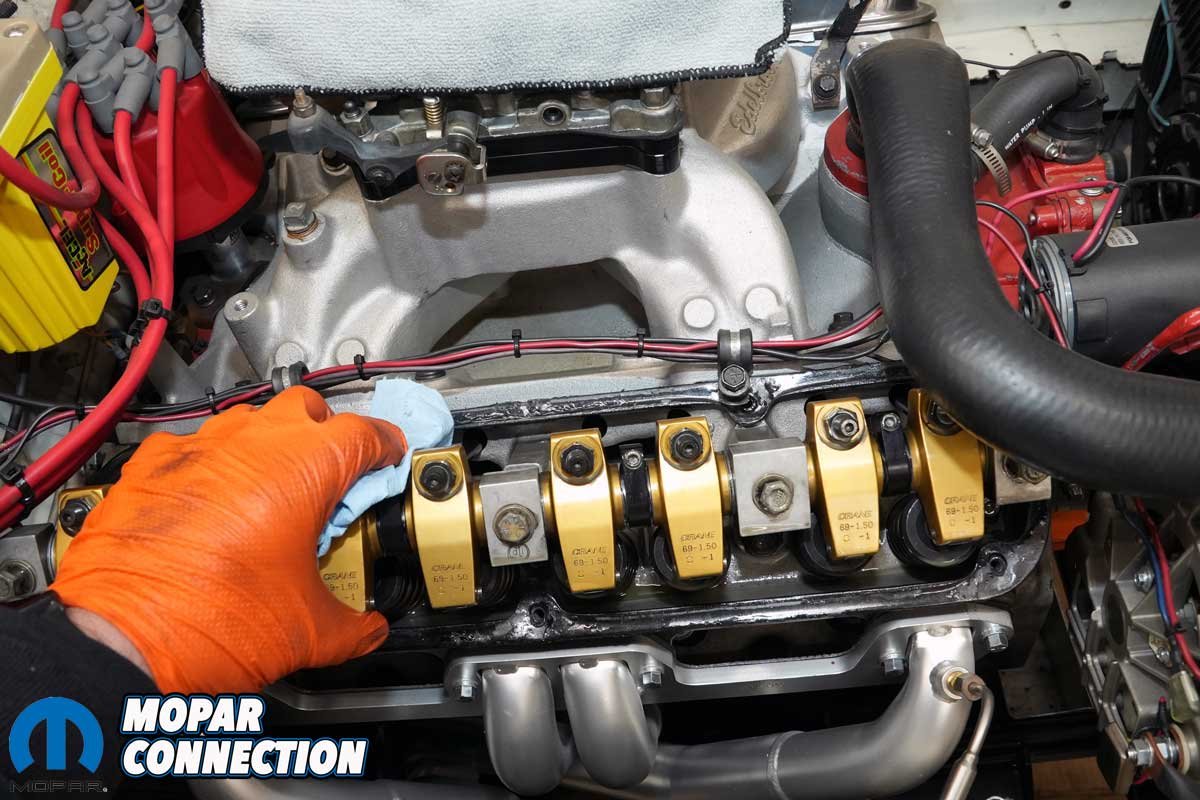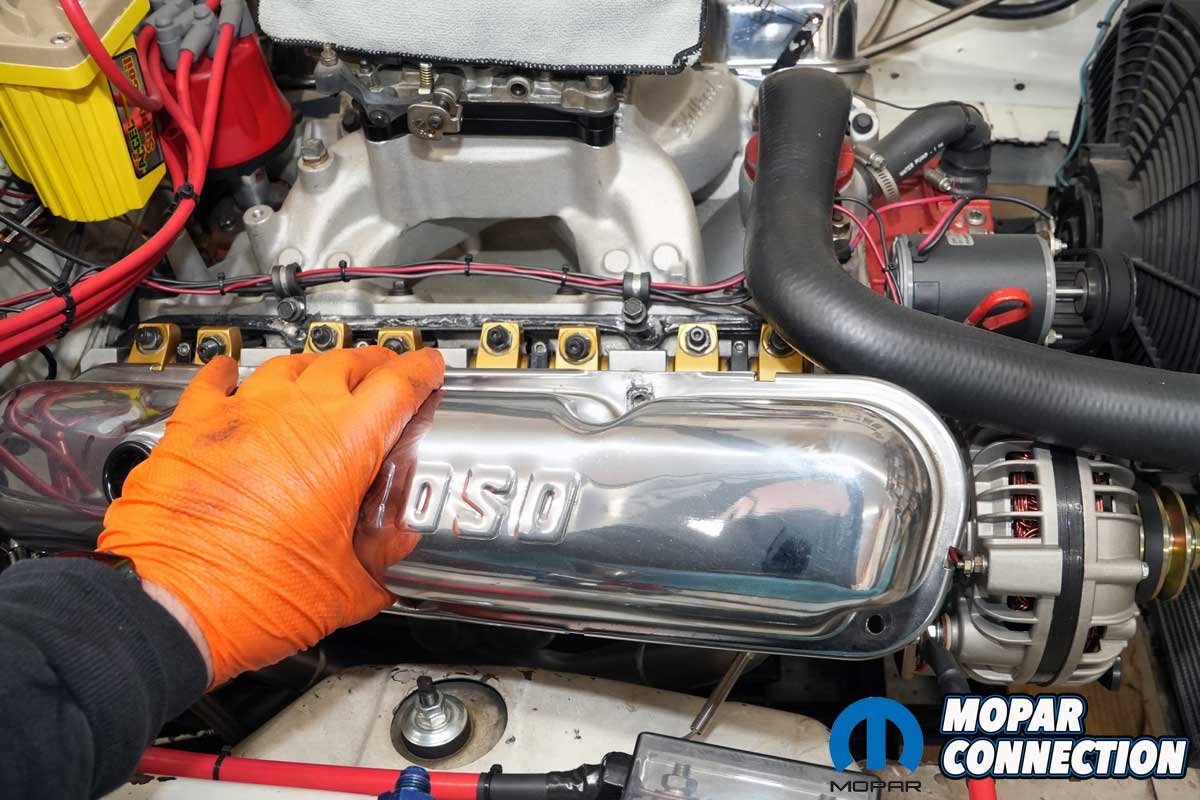Above Left: The 340 was in the Dart when I purchased it on July 13, 1989. Over the years, I added plenty of updates, but the block and crankshaft are originals from September 9, 1967. I have rebuilt the engine three times, and between rebuilds, I race one season on the springs before I swap them for new ones. Above Right: After removing the fuel lines and the crankcase evacuation tubes, the valve cover bolts were unthreaded, and the valve cover was removed.