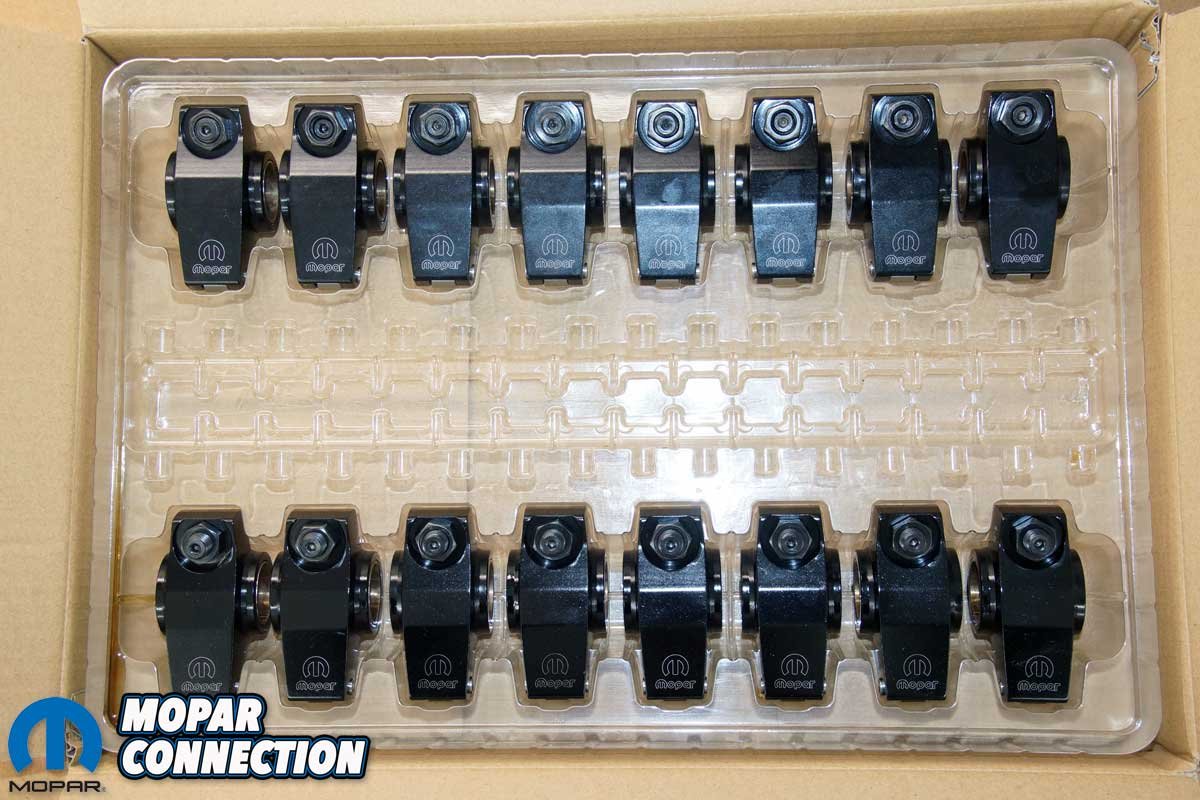 During the heyday of the muscle car era, the Mopar engines came with rocker arms that ranged from 1.45-1.52:1 but were advertised as 1.5:1. The stamped steel rockers were not extremely precise, and the adjustable factory rockers were slightly better. Aftermarket rocker arms are much more accurate, meeting the advertised ratios. PROFORM® Parts has several quality rocker arm sets (rockers, spacers, and shafts) with multiple rocker ratios for the LA, B, and RB engines.