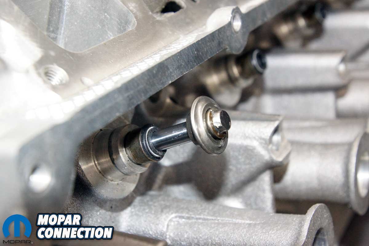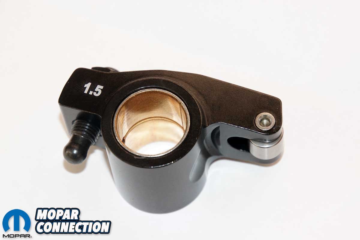 On the Mopar engines with a rocker arm shaft, the shaft may need to be offset with five crescent-shaped shims, which will move the rocker shaft to a beneficial location. With the rocker shaft moved to the ideal position, the rocker tip will be placed appropriately on the valve stem, increasing efficiency and reducing guide wear.