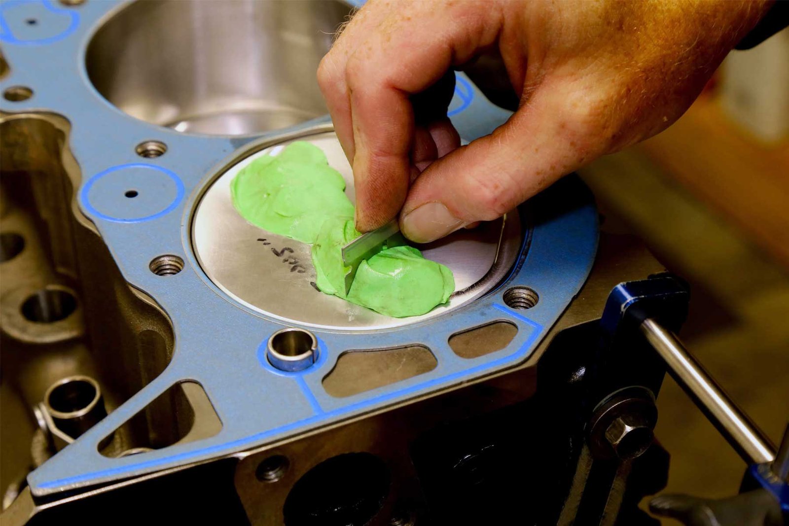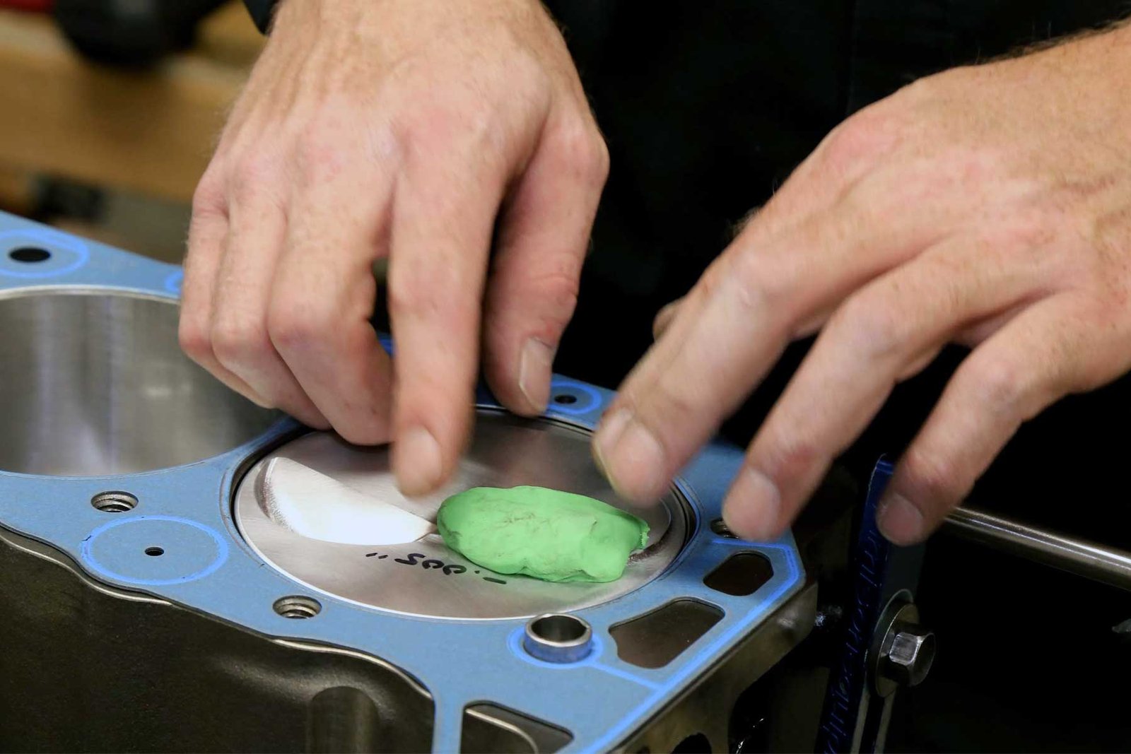 Above: When changing to an increased rocker ratio, the piston-to-valve clearance will change (gets tighter). If the heads are currently off the engine, using clay will provide a clearance measurement for each valve. JE Pistons provides a quality description of the process. (Photos – JE Pistons)