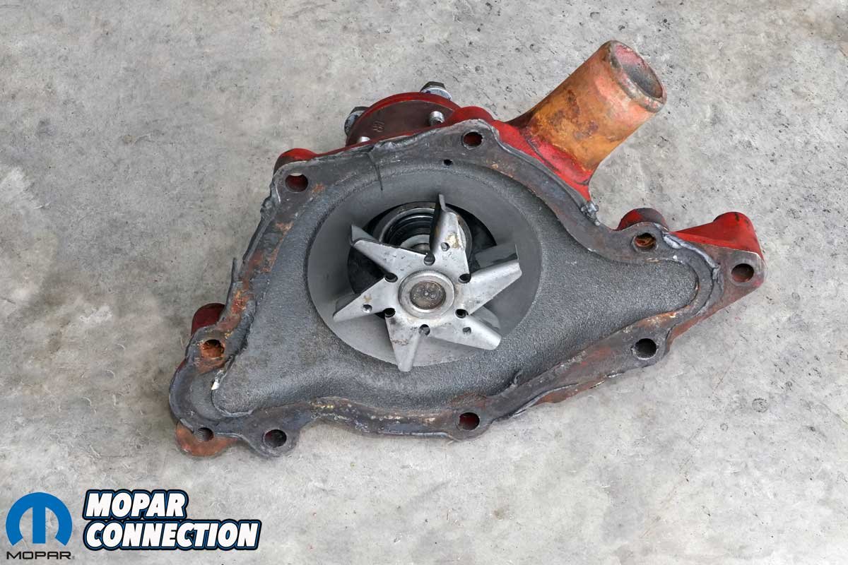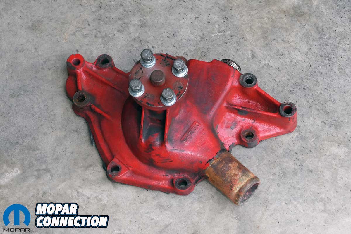 The mechanical water pumps were installed on all the slant-6, LA/Magnum V8s, B/RB big blocks, and 426 Hemis (cast iron or aluminum bodies). Modern pushrod engines like the 5.7-, 6.1-, and 6.4-liter 3 Hemis (use aluminum mechanical pumps), and front-wheel-drive 4-cyl and V6s (2.2-liter Turbo, 3.3-liter, and 3.8-liter) often with water pumps integrated behind timing covers.