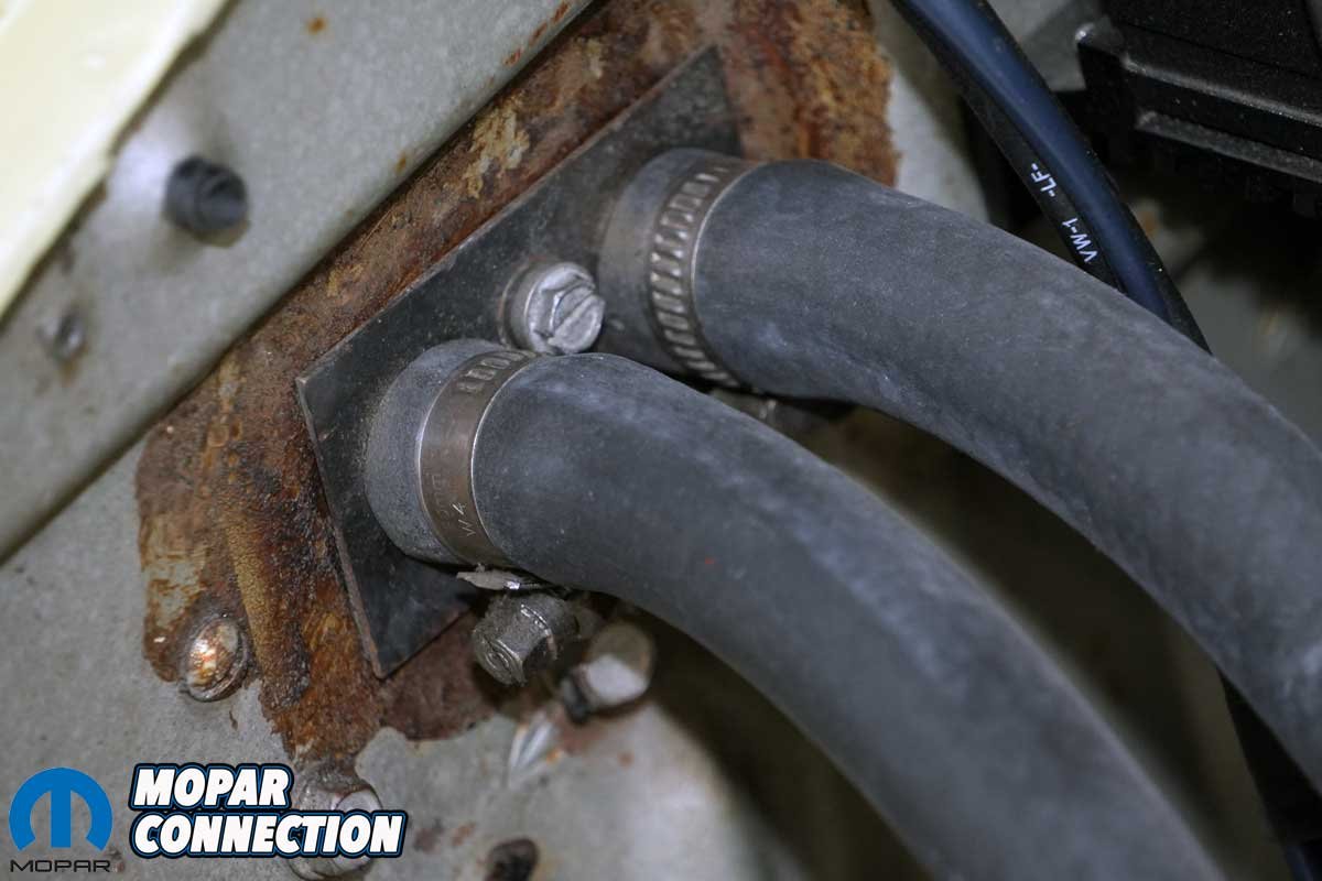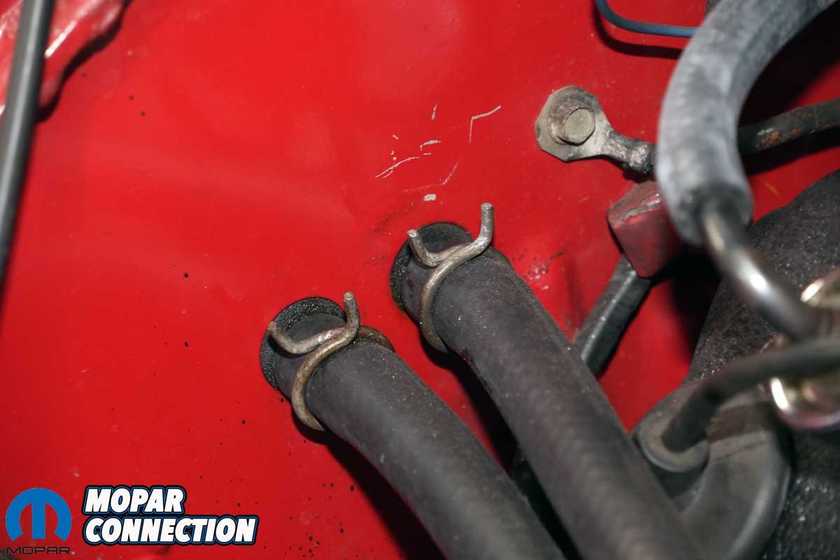 Above: Spring-type hose clamps were popular in early Mopars and the muscle car era. The spring metal held the hoses firmly in place, whether on the radiator, water pump, thermostat housing, or heater core.