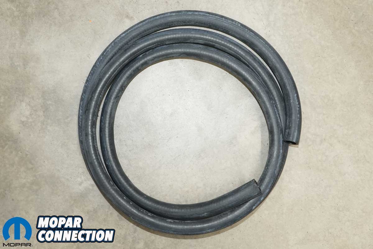 Above Left: Quality radiator hoses come pre-formed for the application in which they are installed. The proper contours allow the coolant to flow smoothly without bubble-forming turbulence found in universal flexible hoses. On Mopar small blocks, there is a pre-formed bypass hose. Above Right: The heater hose is purchased by the foot. It comes off a roll and is a trim to fit for each application’s design. The heater hoses should be replaced at the same intervals as the radiator hoses. Slant sixes use a segment of heater hose for the bypass hose.