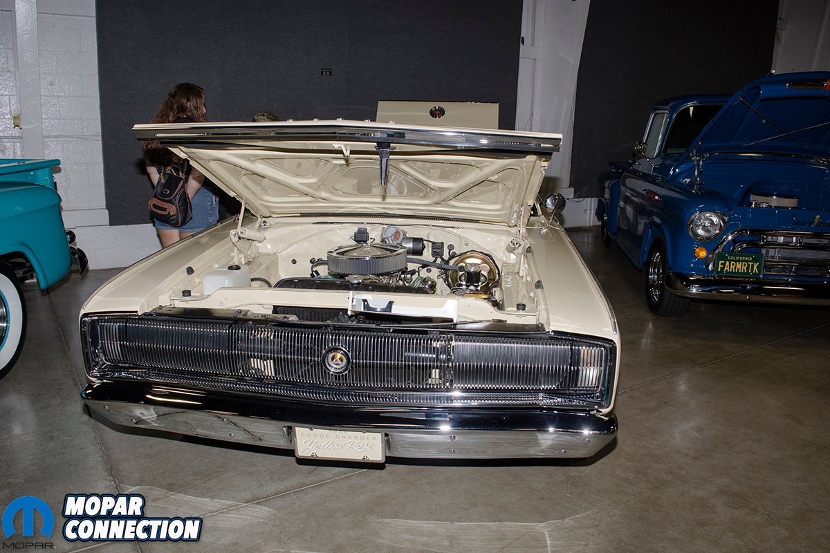 Walking through the three buildings, we were able to find a 1969 Plymouth GTX finished in Sunfire Yellow, with a black vinyl top. Parked in the Women & Wheels display, was a beautiful 1957 Dodge Coronet painted in a striking two-tone color combination of Misty Orchid and black. Oh, and let’s not forget those iconic swiveling front seats. The last car we found parked inside was a 1967 Dodge Charger nicknamed the “Yellow Rose.”