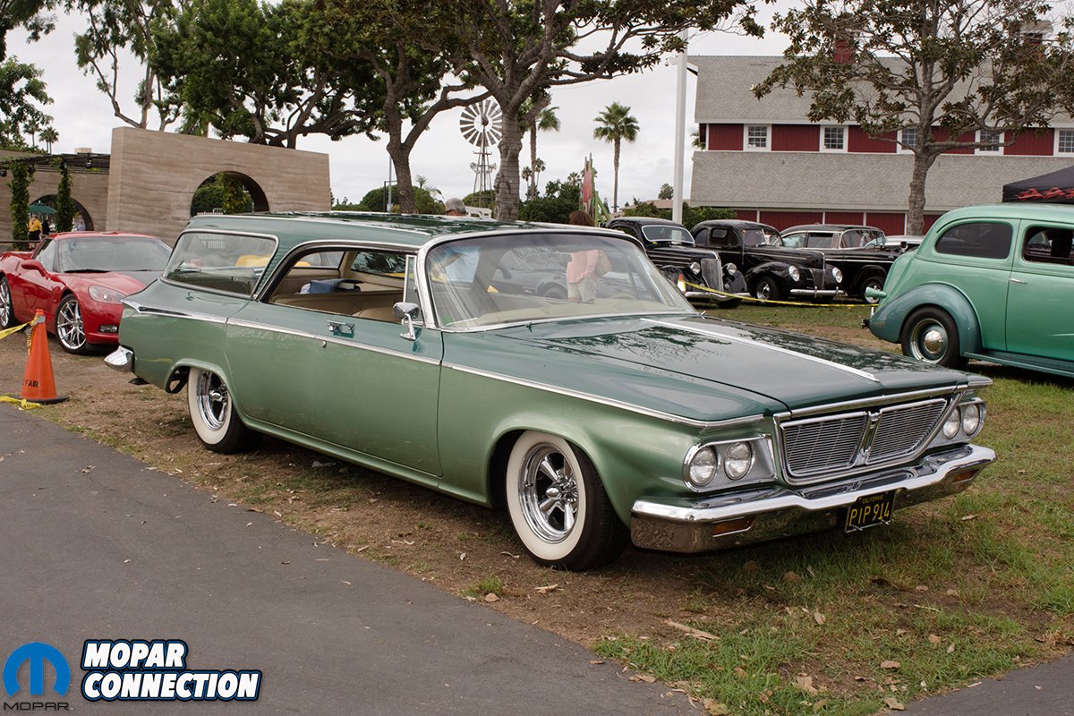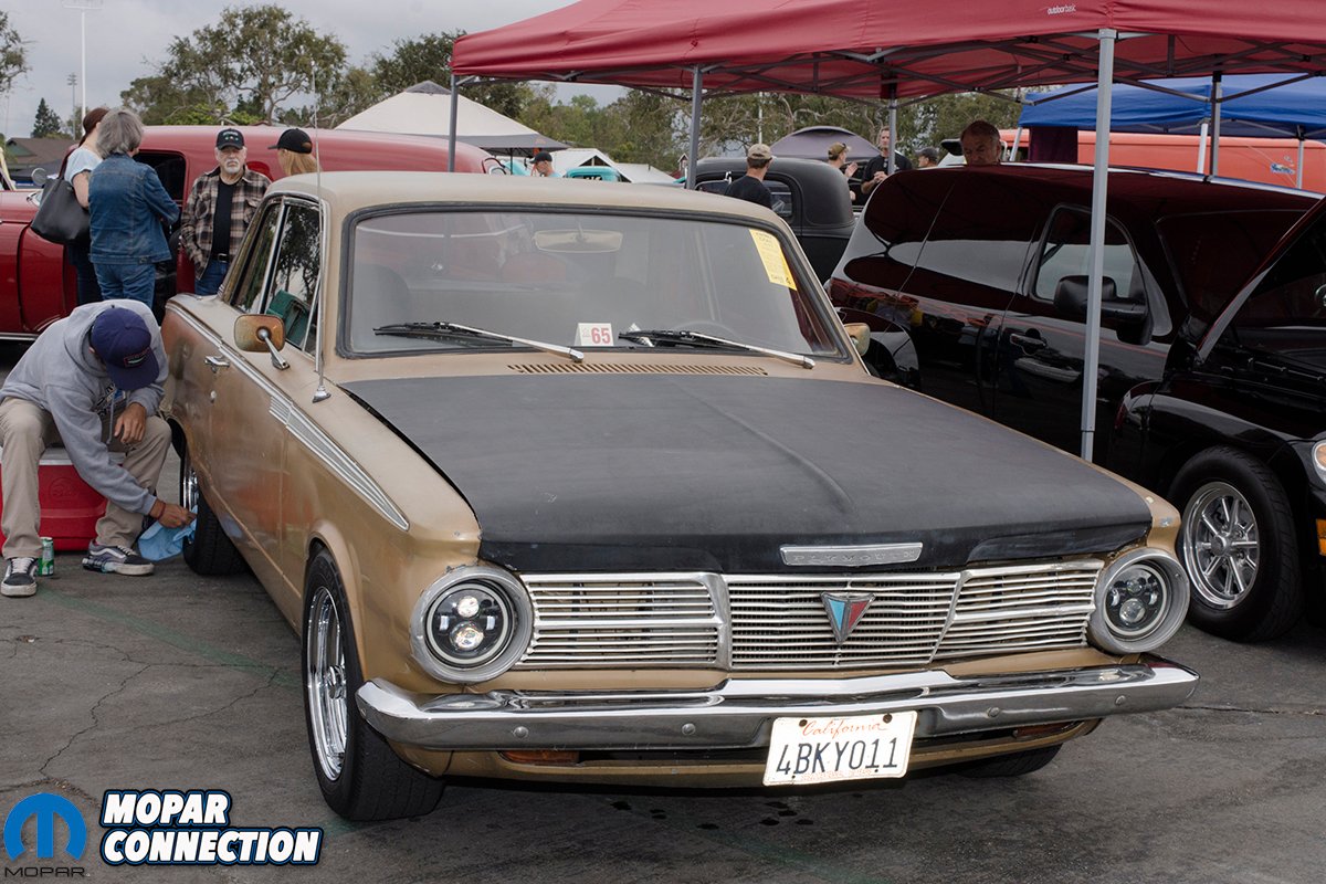 The rain was on an off most of the morning, but finally cleared up towards mid day. Wandering through the numerous rows of the attending classic cars, we found several Mopars during our excursion. A modified 1965 Plymouth Valiant supported modern headlights and Cragar wheels. The hood was painted flat black to give it a more aggressive look. Following it was a beautiful 1966 Chrysler 300 convertible finished in Powder Blue with a dark blue top. The whitewall tires on this car were aftermarket, but were period correct. Also, we were able to point out an all-original 1971 Plymouth Scamp, which was among several cars brought in by the Surf City Classics Car Club of Huntington Beach, California.