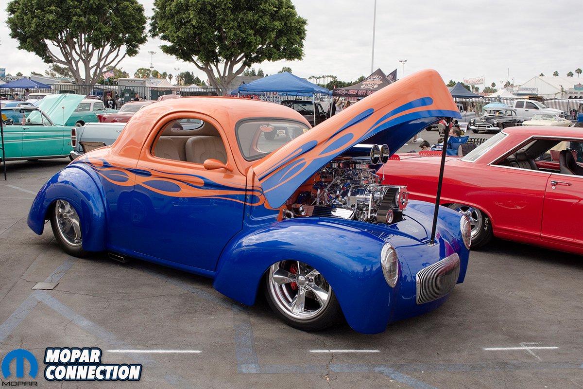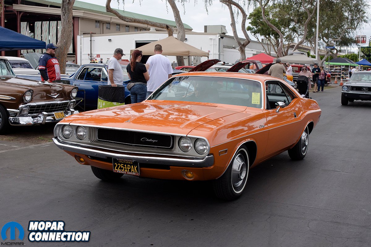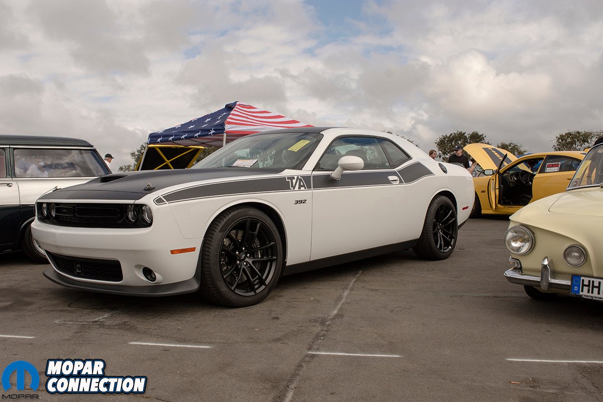 Coming back outside, we were able to spot a customized 1964 Chrysler Newport station wagon. Custom touches included a two-tone paint job, shaved rear door handles, and a set Astro wheels wrapped in whitewall tires. We spotted a black 1973 Plymouth 340 Duster cruising around the show grounds. Parked among the many classic cars near the back of the event was a new-generation Dodge Challenger with a Gen III 392 Hemi.