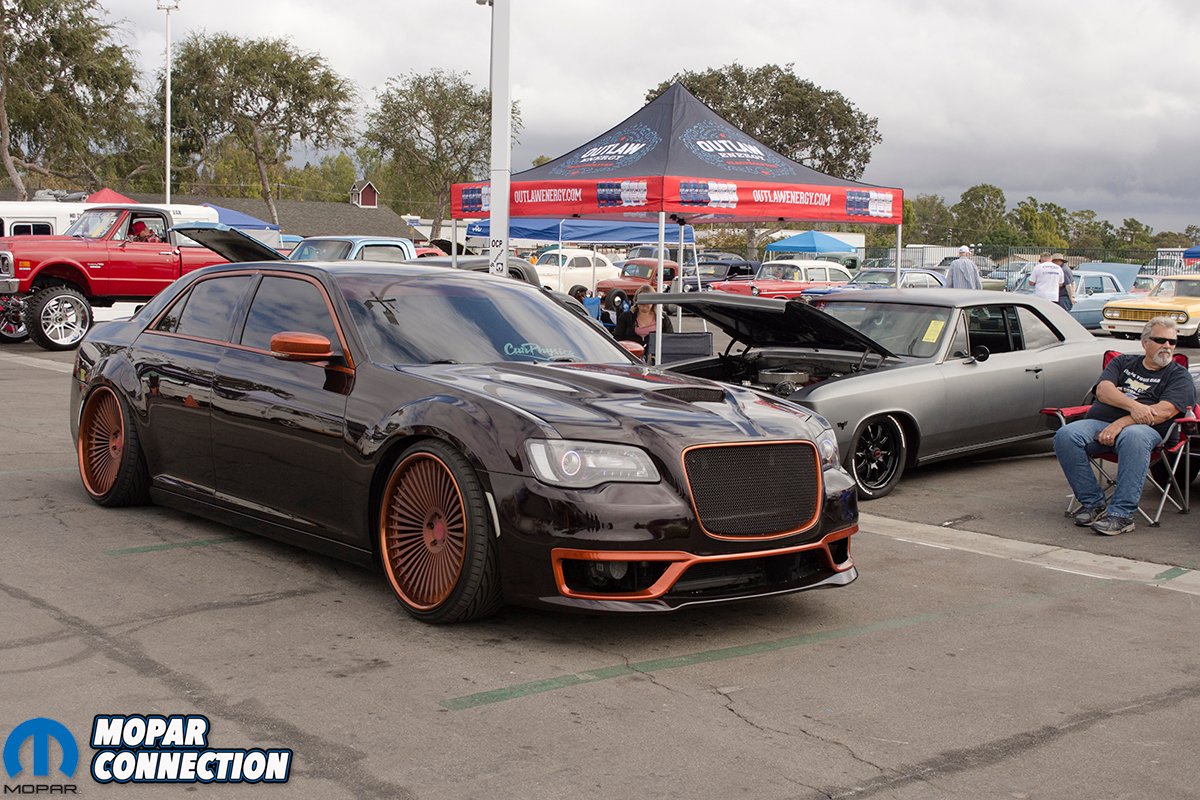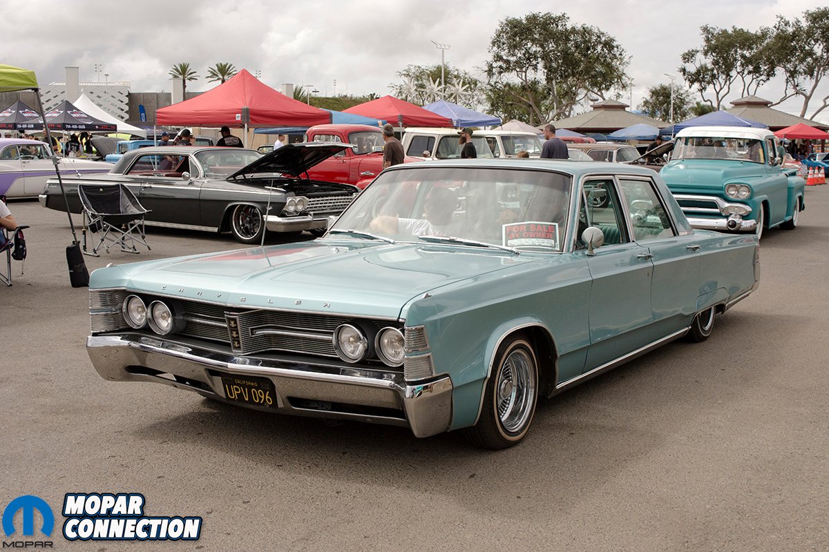 Headed towards the front, was a beautiful 1949 Plymouth Special Deluxe convertible painted in Plymouth Cream. We were also able to find a 1969 Plymouth Sport Satellite painted in Ice Blue Metallic, and a beautifully customized 1961 Chrysler 300 from the Sultans Car Club. Custom features included spotlights on the front fenders, a custom made grille, and lake pipes.