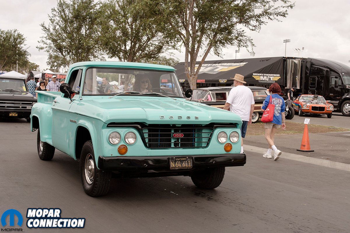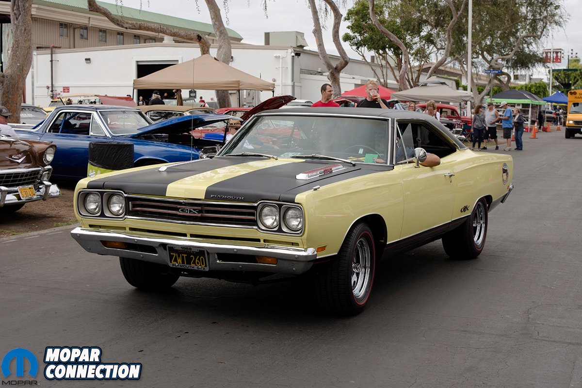 Cruising the show, we were able to find a beautifully restored 1964 Dodge D100 truck painted in Desert Turquoise with black trim. We saw a spectacular 1970 Dodge Challenger base model finished in Go-Mango, followed by a Sunfire Yellow 1969 Plymouth GTX, and a totally original 1941 Plymouth P12 Special Deluxe Woody Wagon.