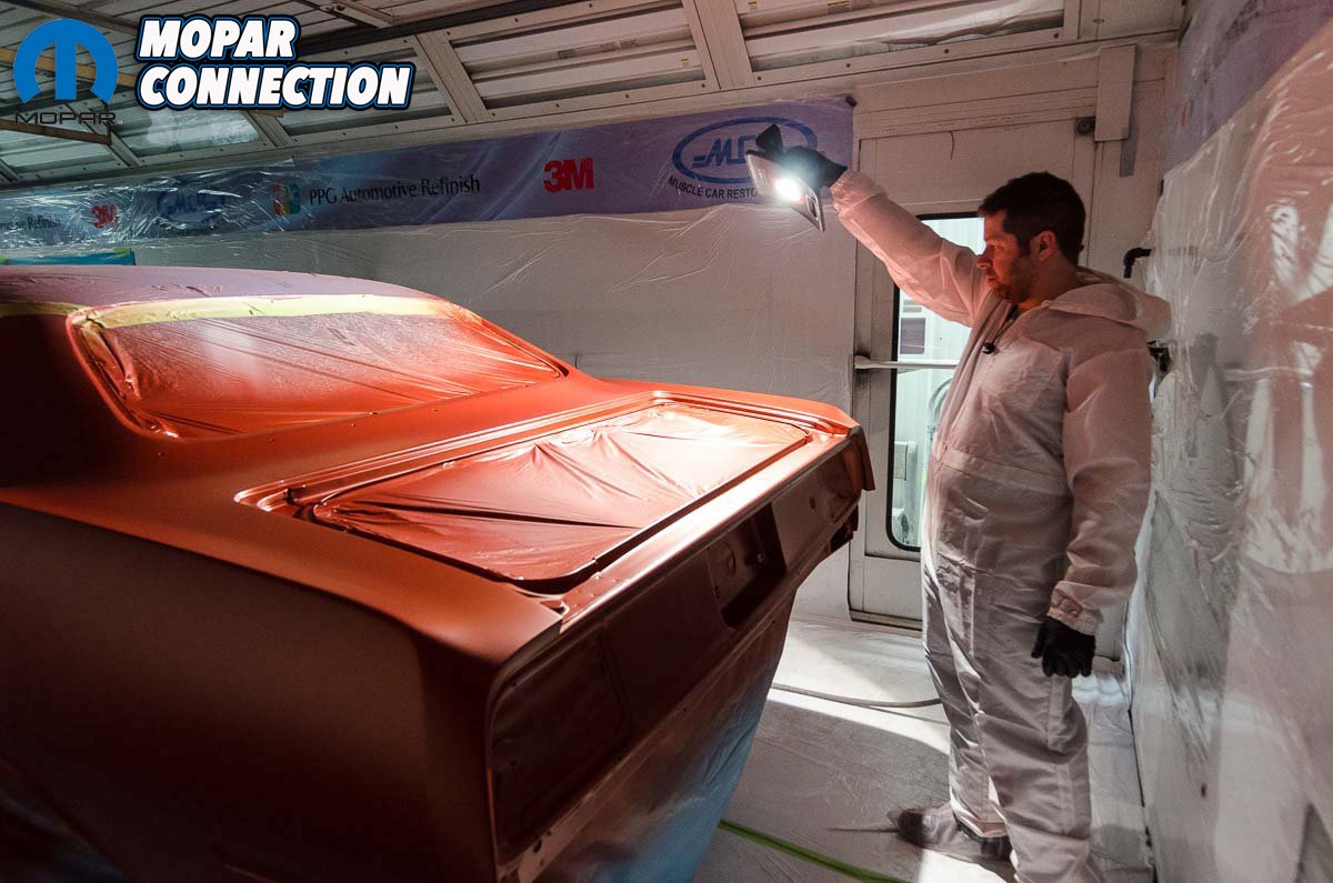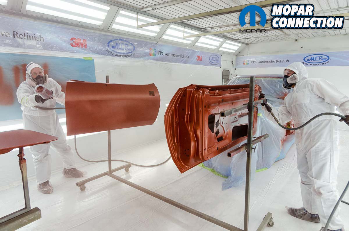 The final decision for MCR’s president, John Balow to make regarding the paint, besides choosing the deep burnt orange FK5 color of his original dream car, is whether to leave the final clear coat as is for a factory-like finish or to have it cut and buffed to a very mirror-like high gloss. Last heard, he hadn’t decided yet but he did have extra clear coats applied to keep the option open.