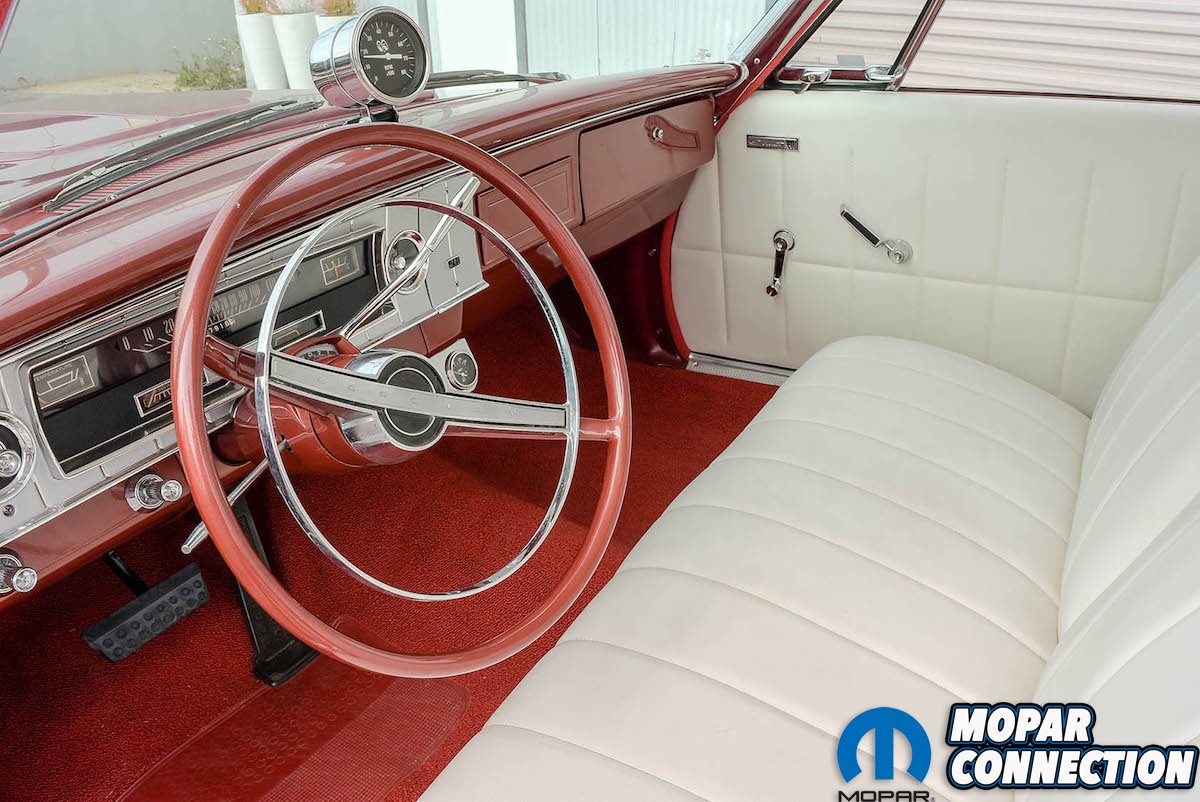 The car was repainted in the original Ruby Red Metallic that it once wore when it was new. As a drag racing fanatic, Darin turned the car into what could have been a full-blown racecar. Smith found a pair of 12” Hurst cheater slicks from the 1960s, added, and installed them with the rear wheels. In went the bored and stroke 426 Hemi engine, by Mopar Performance.