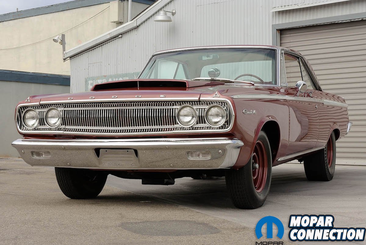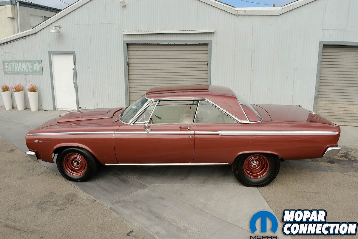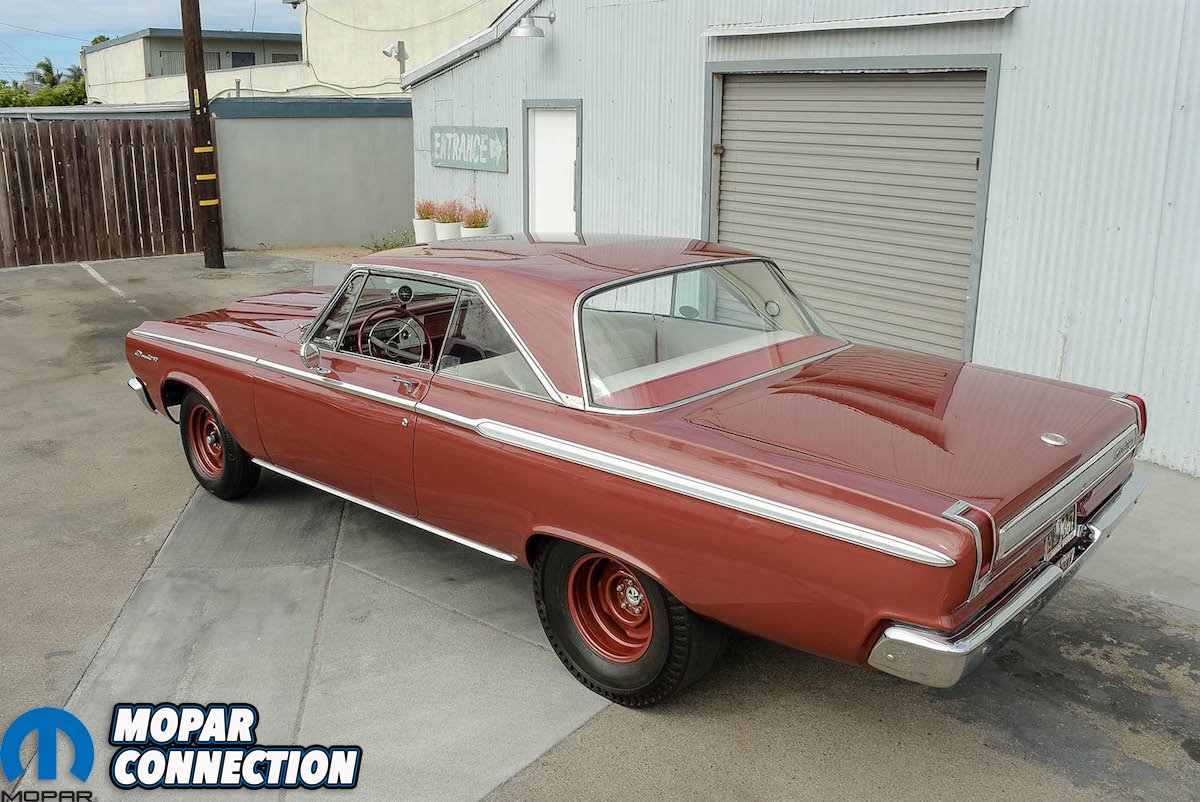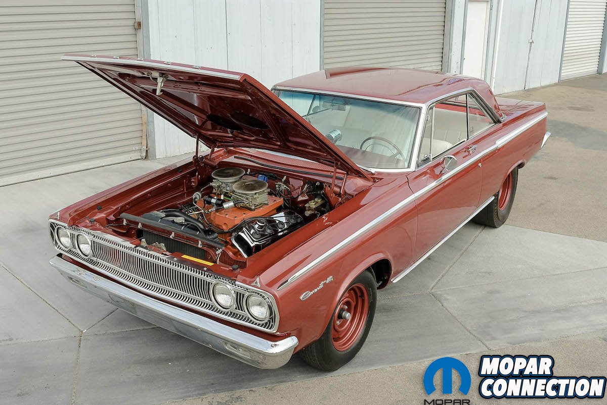 Darin Smith, of DWS Classics in Huntington Beach, California, has good taste in classic Mopars. His shop offers service, and restoration for classic cars. Parked in the corner of the shop is Darin’s personal Mopar, a Ruby Red Metallic 1965 Dodge Coronet 440 Super Stock clone, with white interior. Underneath the hood is a Mopar Performance 472, which is the same thing as a bored and stroke 426 Hemi. Fitted to the engine, are cheater carbs, with velocity stacks. The car currently sits on a set of original drag racing tires from the 1960s, two of which are an original pair of Hurst 12-inch cheater slicks. Underneath the rear of the car, is a Dana 60 rear end with all the Strange parts that were offered. Also, the car has a 727 reverse manual automatic transmission, and connected sub-frame.