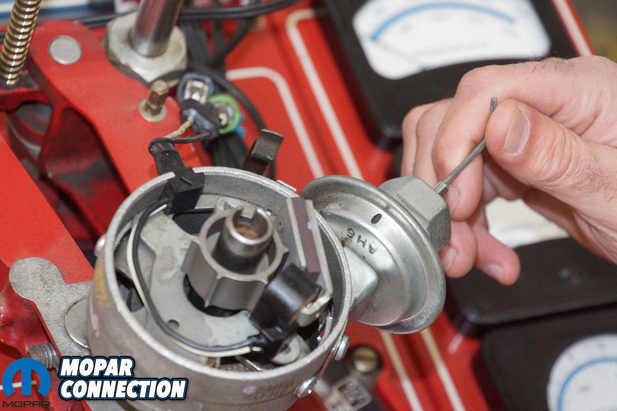 This can be achieved by removing the vacuum hose at the canister and inserting a 3/32” Allen wrench into the nipple of the canister. A simple turn of the wrench counter-clockwise (CCW) will slow the advance rate or equally, a turn clockwise (CW) will speed up the advance rate. On the other hand, if the engine detonates in light-load applications, the advance limit is too great, and a vacuum canister with less advance must be installed. In most cases, the advance rate will be the factor that needs attention.