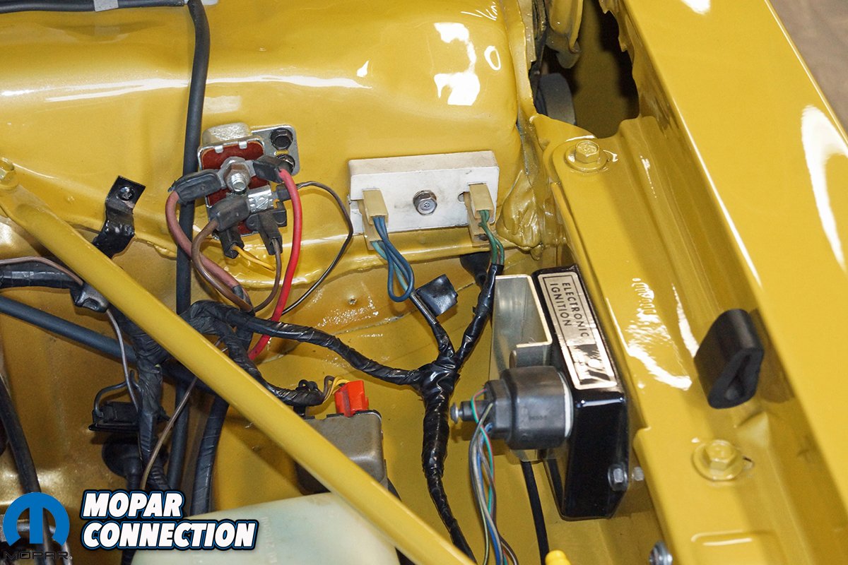 Above Left: The slant six received new bearings, rings, and gaskets in 2011, and has less than 9,500 miles since the refresh. Above Right: The ignition is a factory electronic ignition with a dual-ballast resistor and 5-pin ignition module.
