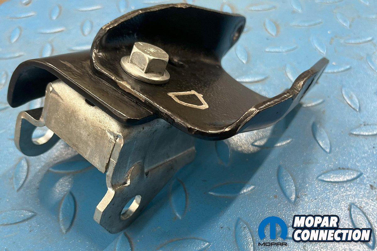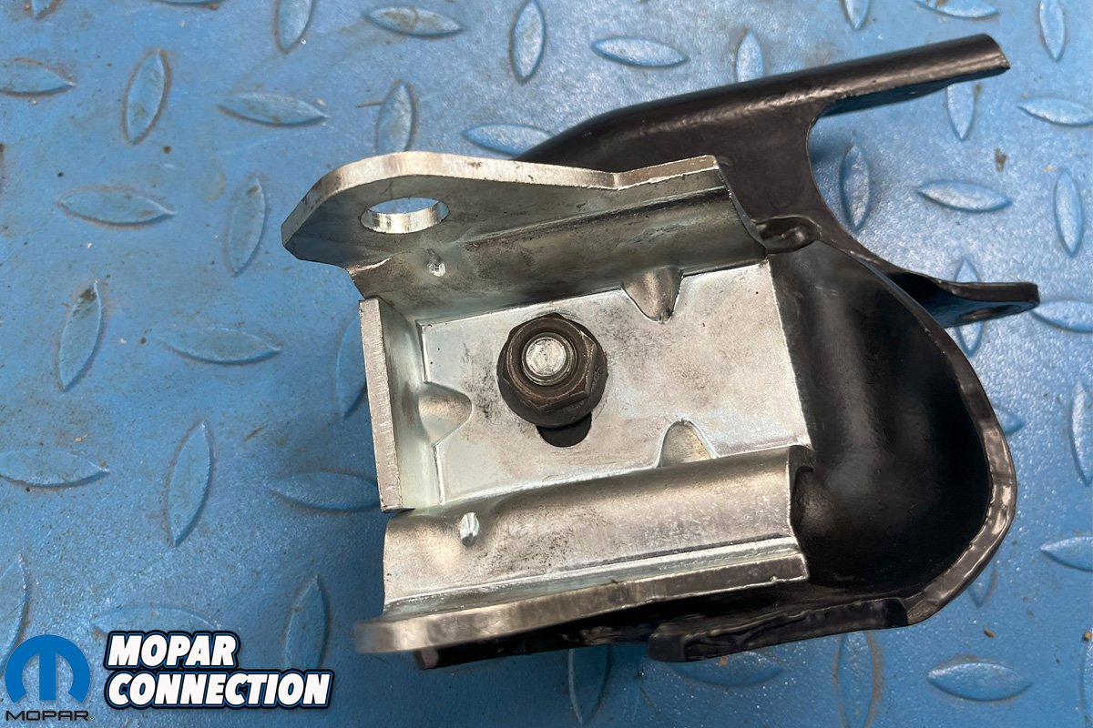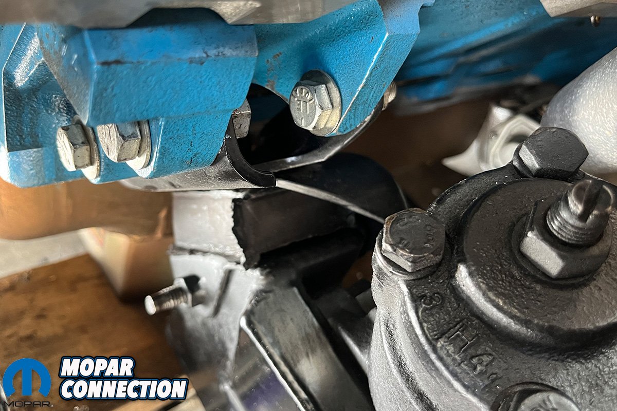 Since the car has a pin-on hood it’s very easy to see just how much it moves during a quick rip with the hood off of the car. While chatting with Mopar Connection’s own Kevin Shaw about this, he suggested an old hot rodder’s trick and run a solid motor mount on the driver’s side of the car. It removes the need for a torque strap and still allows for a rubber isolator to soak up any extra vibration. In fear of breaking something as we start to race the car more, we took his advice and began searching for parts.