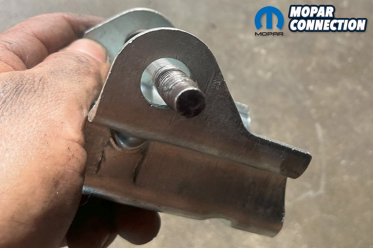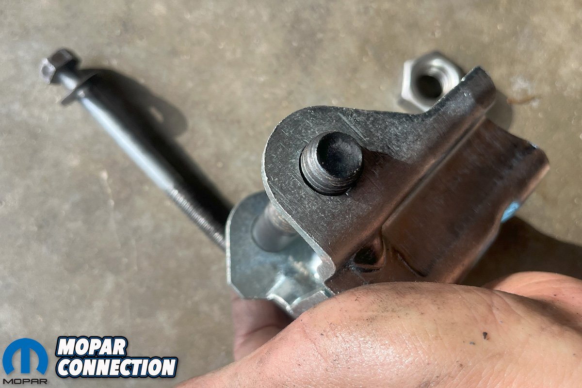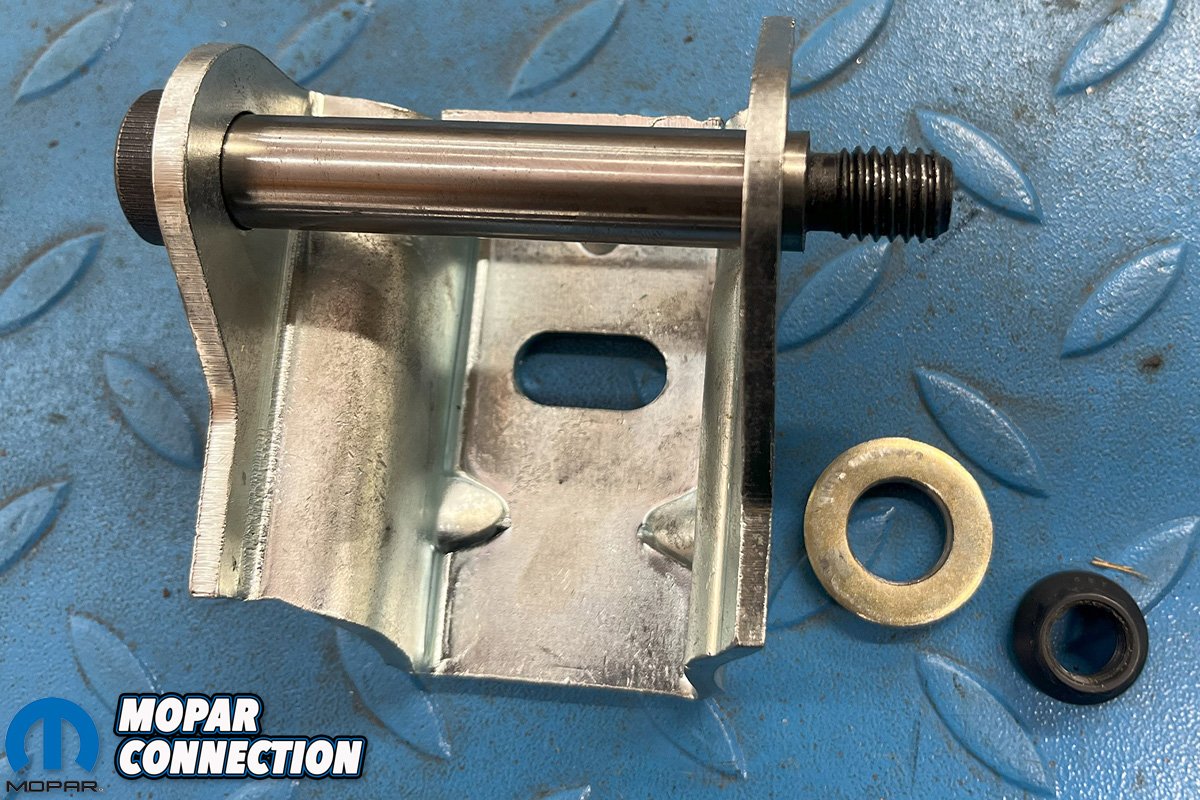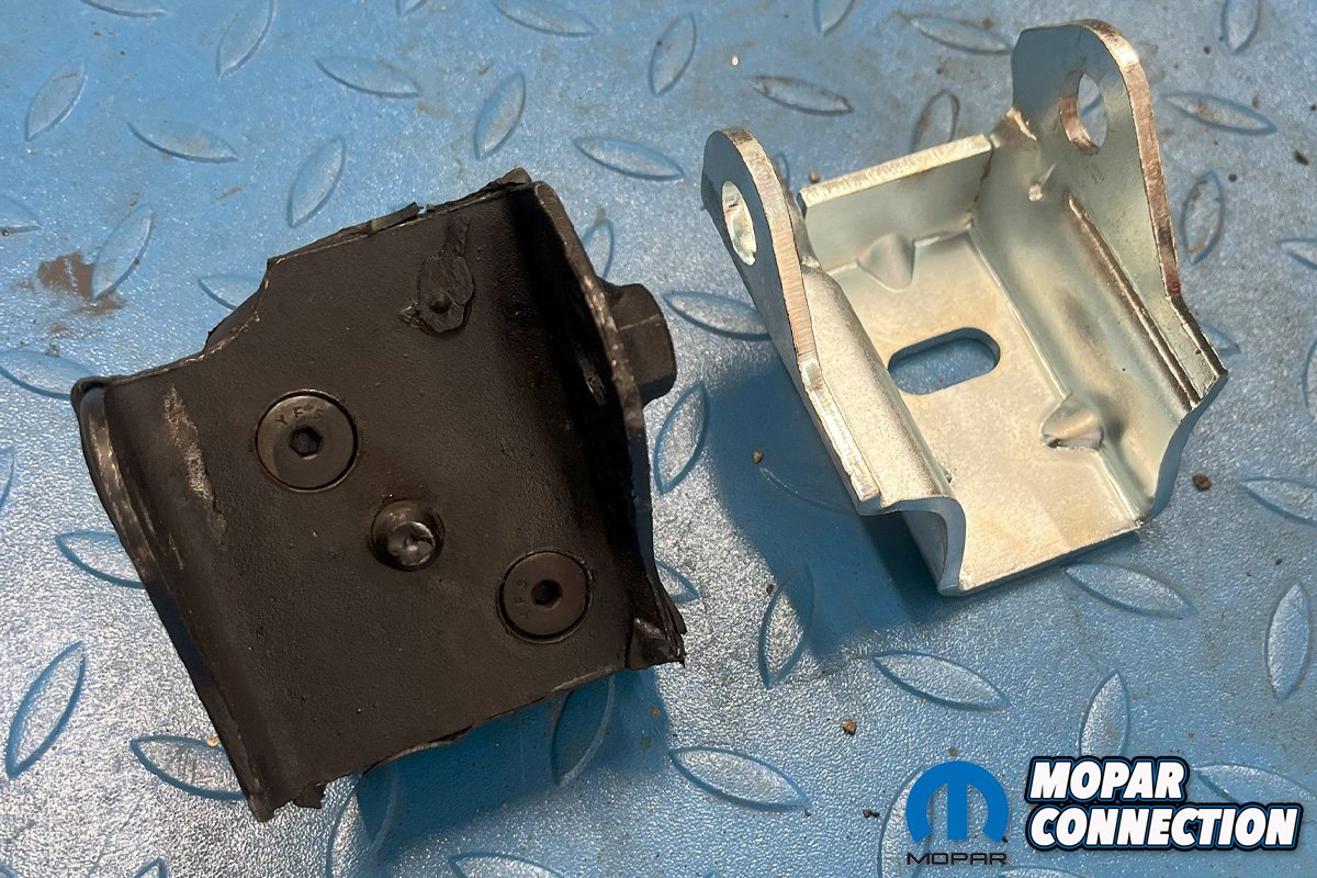 Since the car has a pin-on hood it’s very easy to see just how much it moves during a quick rip with the hood off of the car. While chatting with Mopar Connection’s own Kevin Shaw about this, he suggested an old hot rodder’s trick and run a solid motor mount on the driver’s side of the car. It removes the need for a torque strap and still allows for a rubber isolator to soak up any extra vibration. In fear of breaking something as we start to race the car more, we took his advice and began searching for parts.