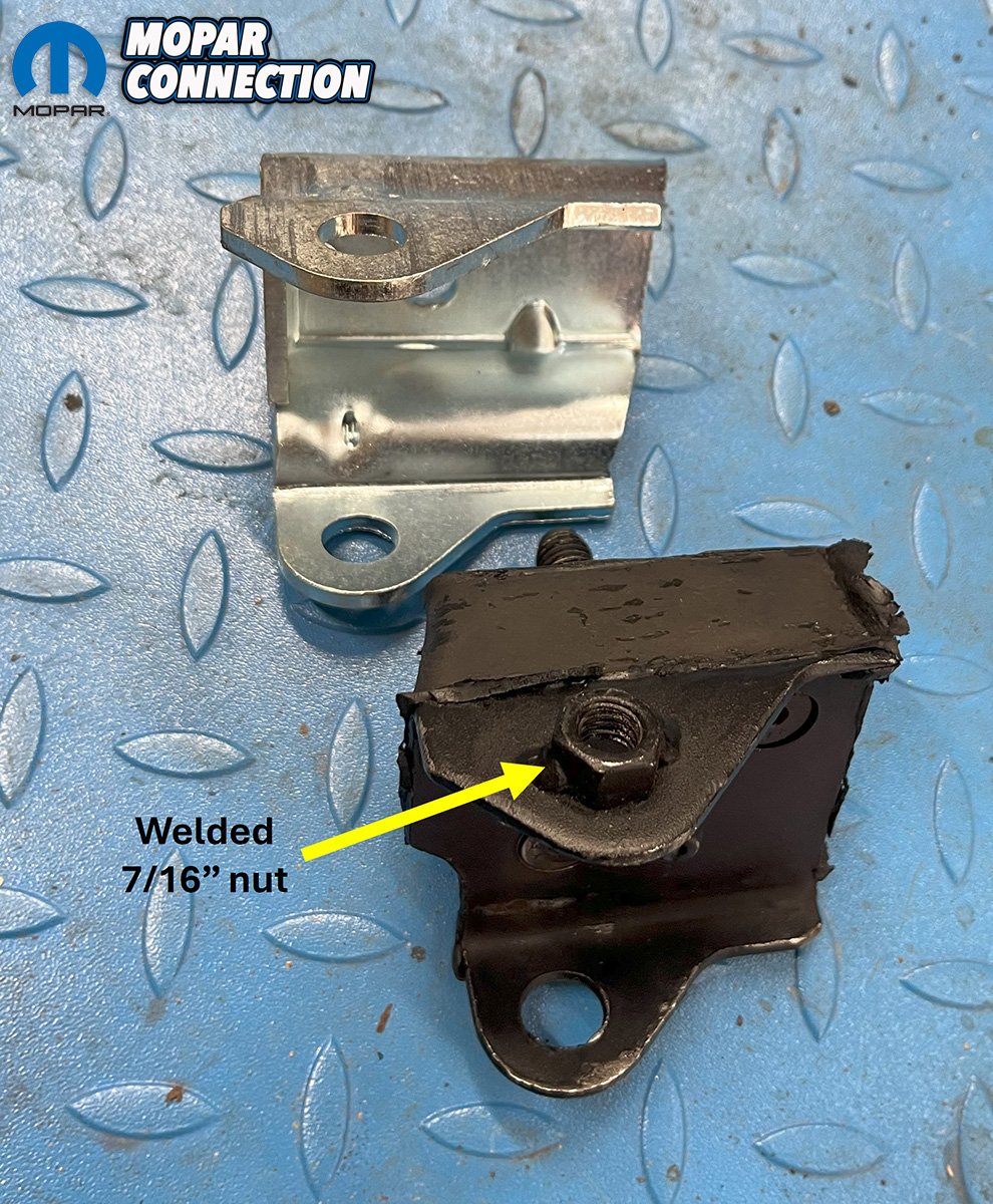 - They do not have a nut welded on one ear for you to thread the long bolt into that passes through one side of the mount, the K-member and then threads into the other side of the mount