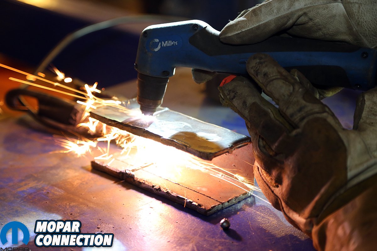 Once the repair was welded in place, the cracks were welded up. Keeping the welds down to 1-inch increments is a good idea. Not only does this help reduce warping, but also reduces the potential for burn-through on the relatively thin sheet metal.