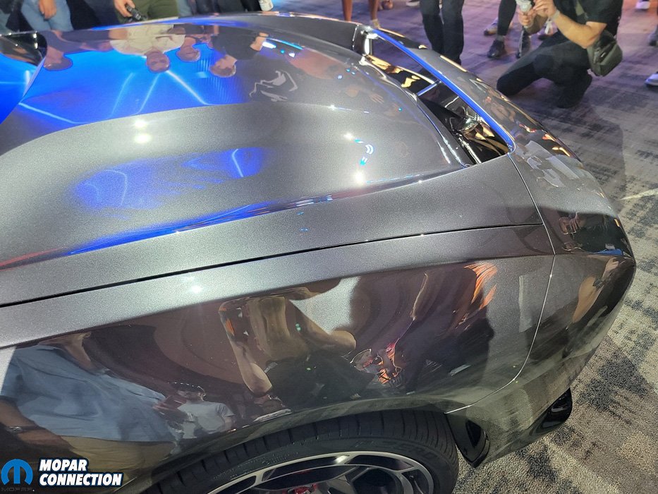 When you look up close, you can see that this new Charger grille is not enclosed like the classic. Instead, the upper portion of the front fascia is actually a small spoiler and the grille area is sloped, forcing air up across the curved and over the sleek roof line. Dodge calls this front end design the R-Wing and it is the reason why the team was able to achieve the slippery aero properties needed of an EV without looking like every other EV on the market today.