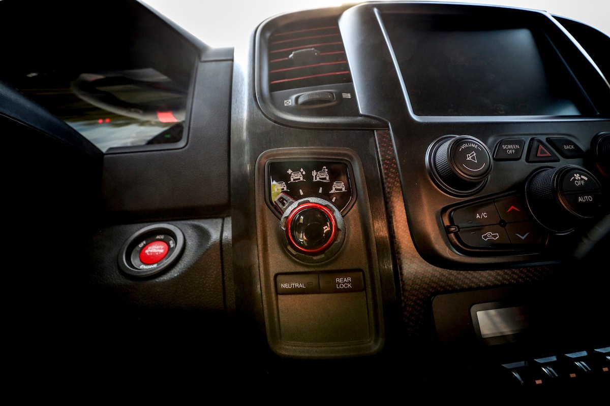To provide incredible stopping power, the factory hydraulic-boost compensation unit enhances brake pedal feel and performance during emergency stop events. Baer brakes six-piston monoblock calipers mounted to 15-inch rotors equip the front. The rear uses six-piston calipers with 14-inch rotors.