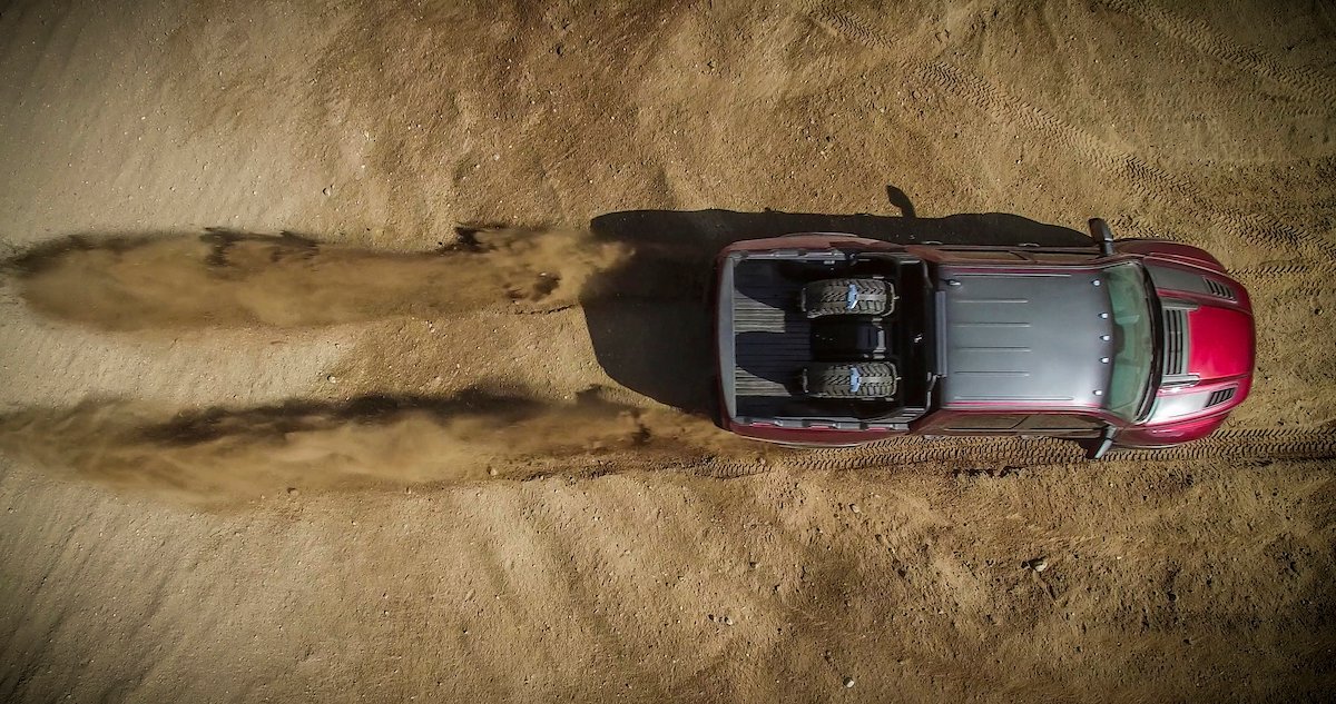 The Ram 1500 uses an exclusive, best-in-class link coil rear suspension system that shares basic architecture with the fastest off-road trucks in desert racing. The frame’s hard points for the five-link suspension system are unchanged and allow the rear axle travel to span up to 13 inches, while standard rear-wheel travel on the Ram 1500 is 9.25 inches. New 2.5-inch bypass shocks use factory upper and lower shock mounts. The standard rear coils are swapped for performance springs located in the factory-spec positions.