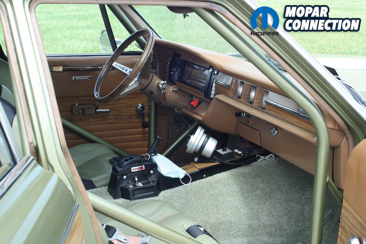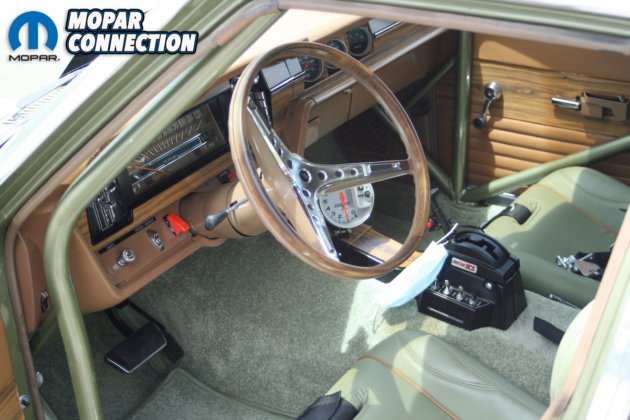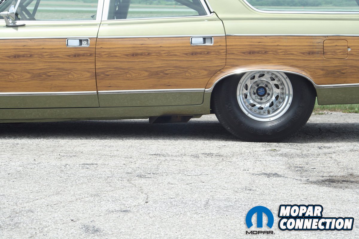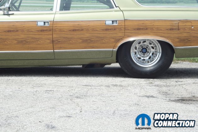 For stopping power, Don used C4 Corvette 11” rotors with GM single-piston calipers and a TCI line loc unit. In the rear Lincoln Versailles, cast iron single-piston calipers were used with vented Ford 11” rotors. The wagon rides on Centerline Warrior aluminum rims. The 15X6 rims have BFG T/A 235/60R15 on the front, while the 15X15 rims have Mickey Thomson Sportsman Pro 28X18.5X15 in the rear. The wagon uses a stock fuel tank that has been modified and holds 14 gallons.